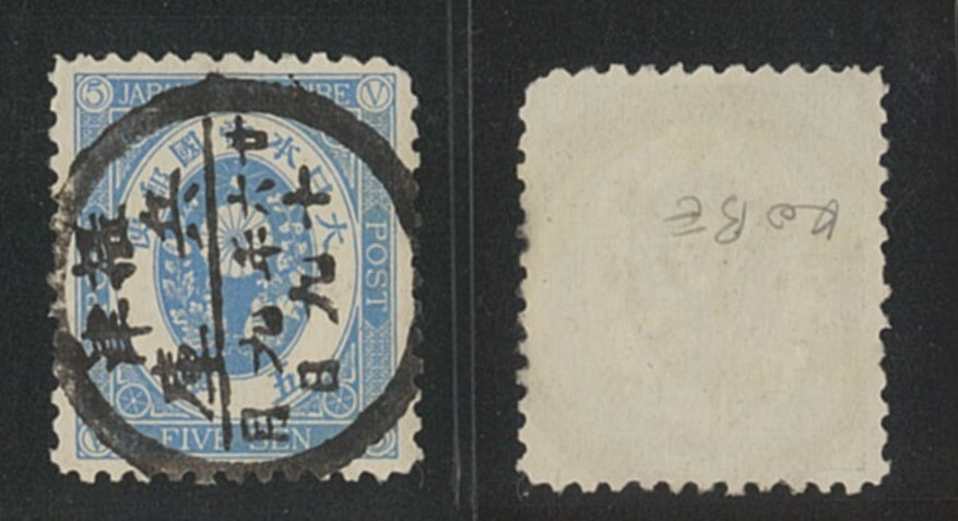 日本切手 使用済 U小判 5銭 後期12 兵庫 青うら書き込み有