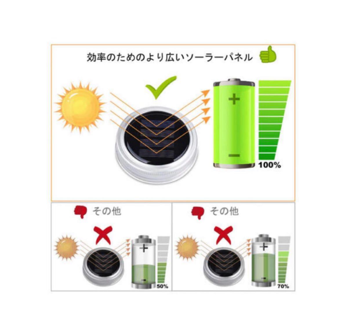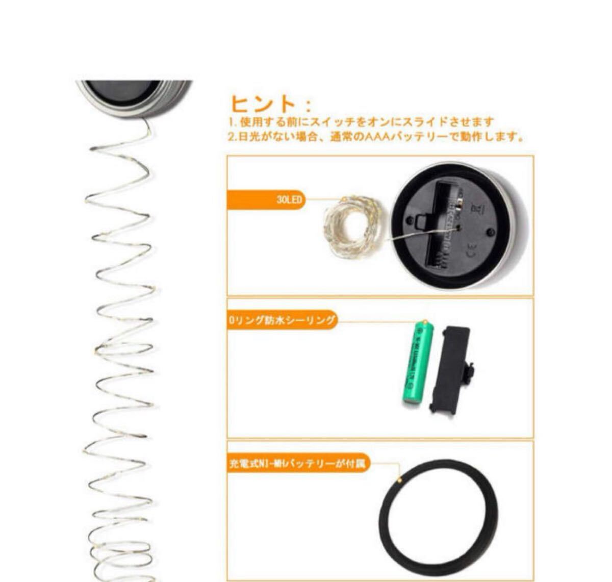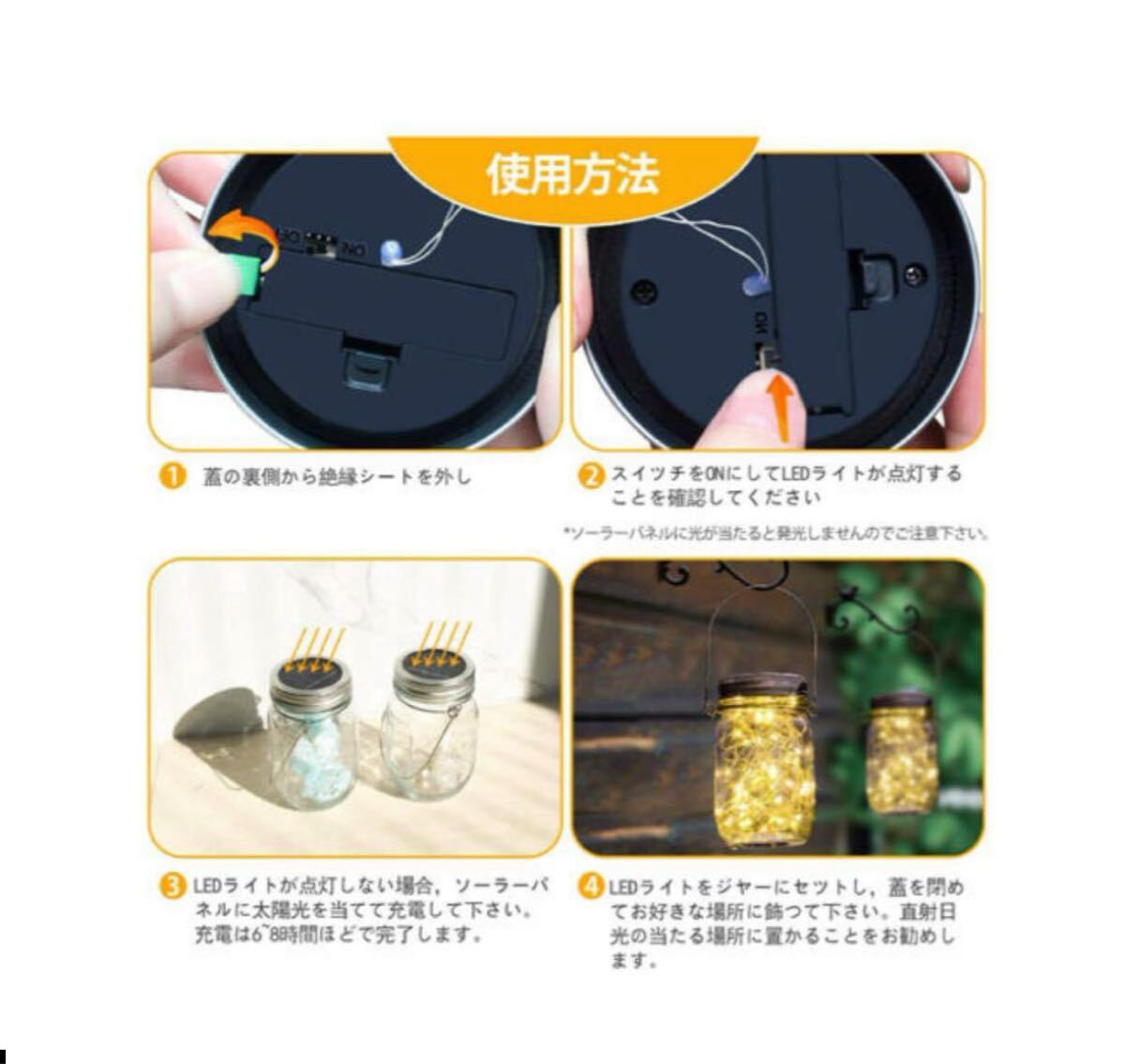 【メイソンジャー風ソーラーライト(30LED)】:ソネングラスを太陽に吊るすだけ.ランタン ソーラーサムを内蔵光センサー,日中に6-8時間エネルギーを蓄えて,夜間や暗闇では自動に8-10時間光を灯します.(ソーラーパネルに光が当たると自動的にライトが消える仕組みになっています.日中や屋内などでご使用になる場合にはソーラーパネル部分を覆い隠して下さい.