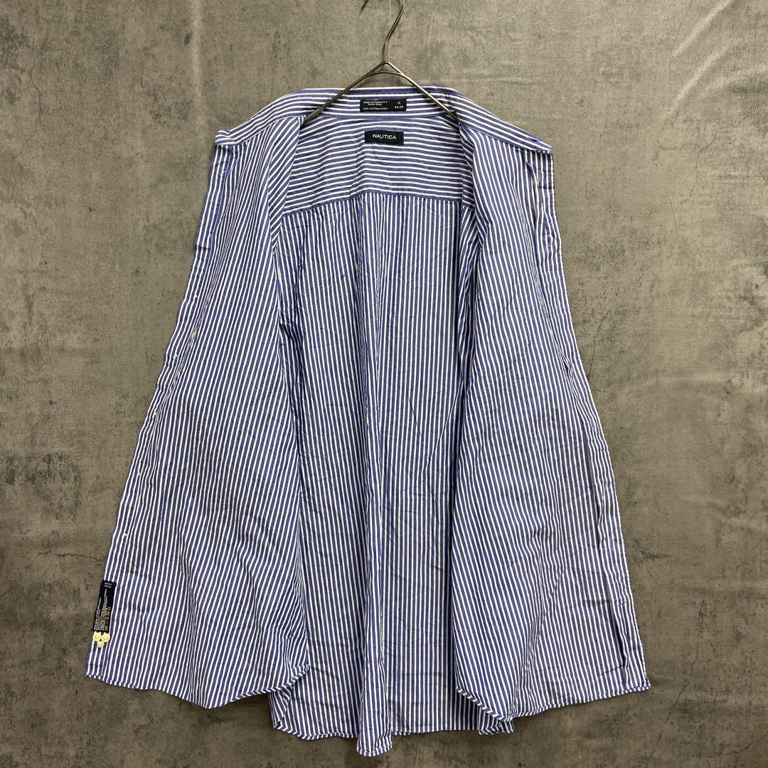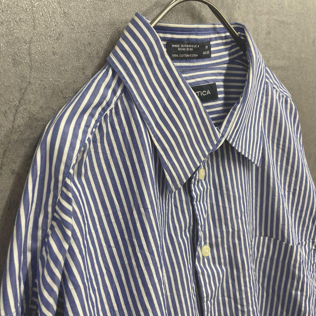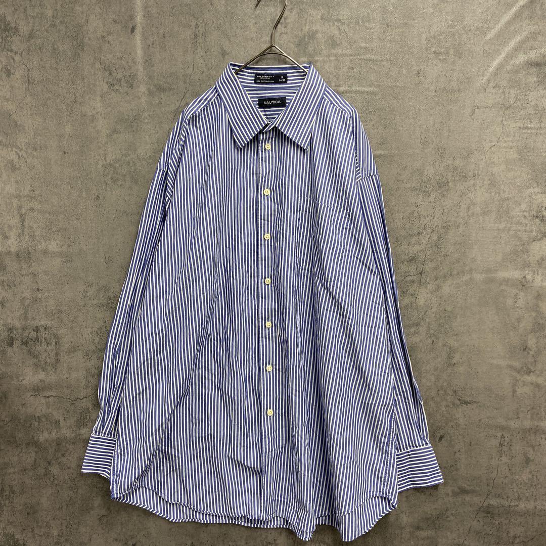 人気ブランド「ノーティカ」の長袖ストライプシャツです。爽やかなブルー×ホワイトのストライプ柄で、ビジネスからカジュアルまで幅広くお使いいただけます。