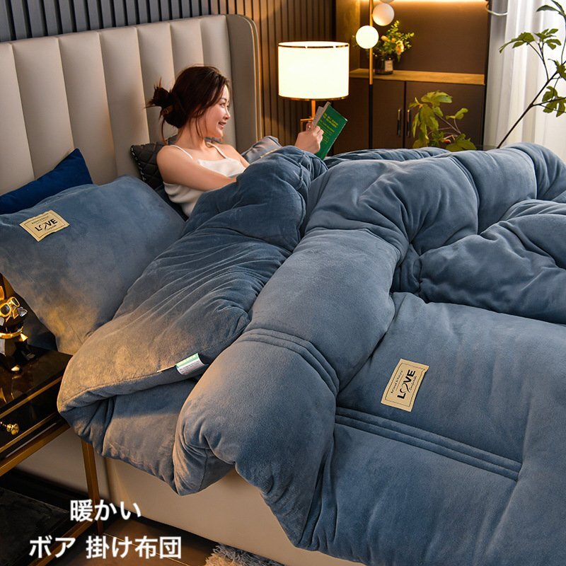 ボア掛け布団 掛ふとん 保温 あったか フランネル 暖かい ふわふわ もこもこ 柔らかい 吸湿 防寒 ブルー 200cmx230cm 冬用重量約4KG