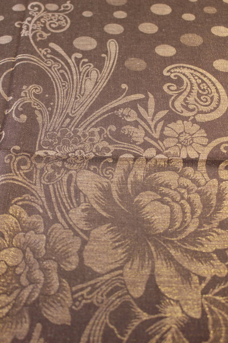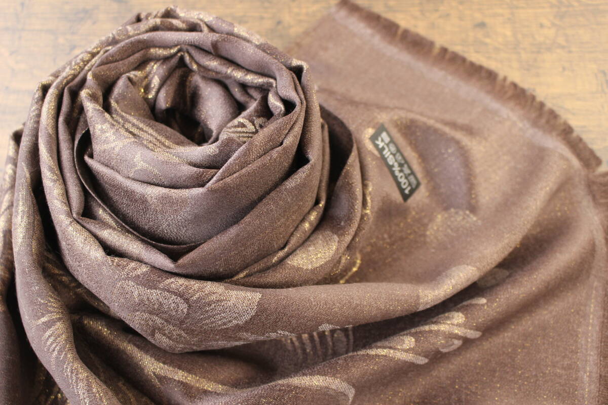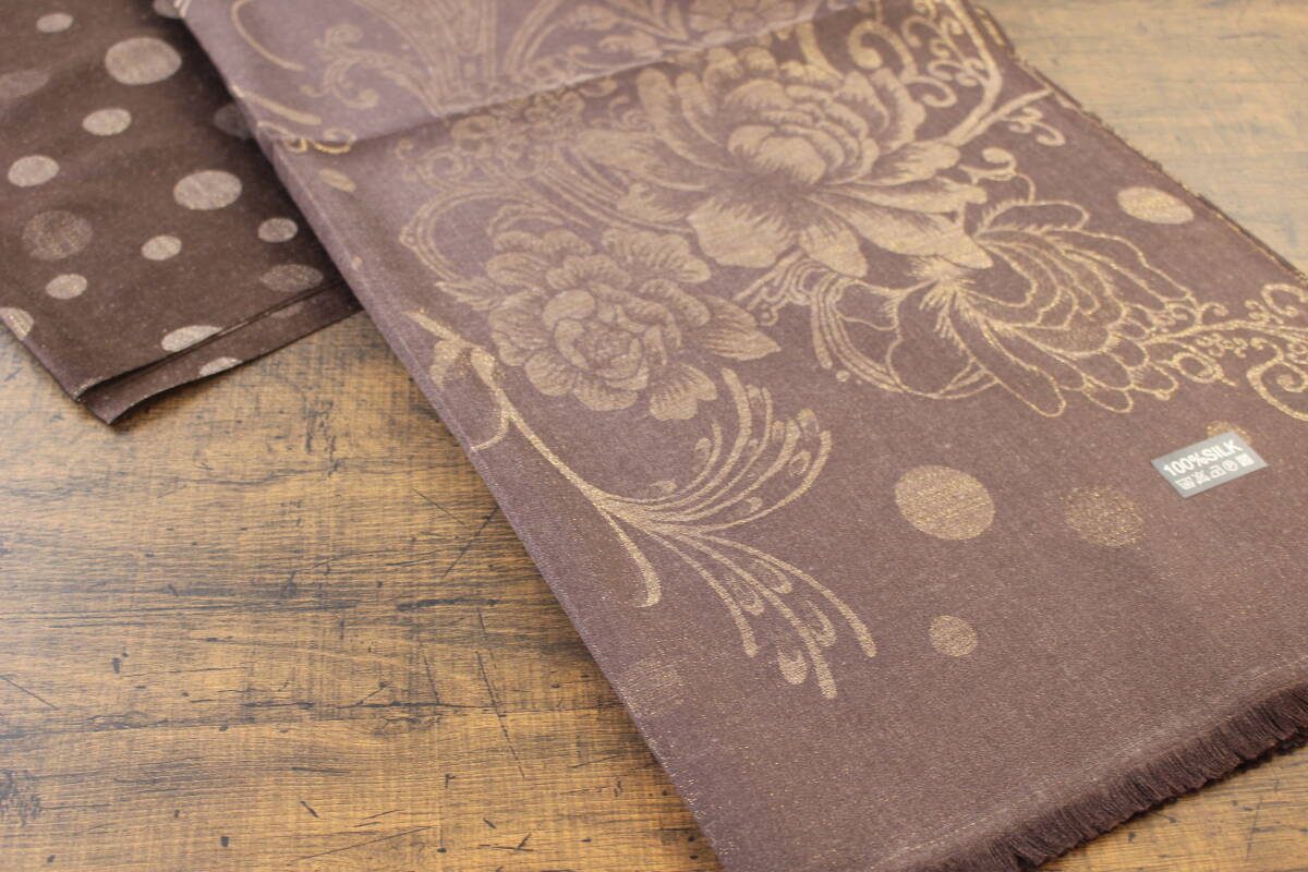 新品【シルク100% SILK】金糸混 ペイズリードット柄 ブラウン 茶色 BROWN 大判 ストール/スカーフ
