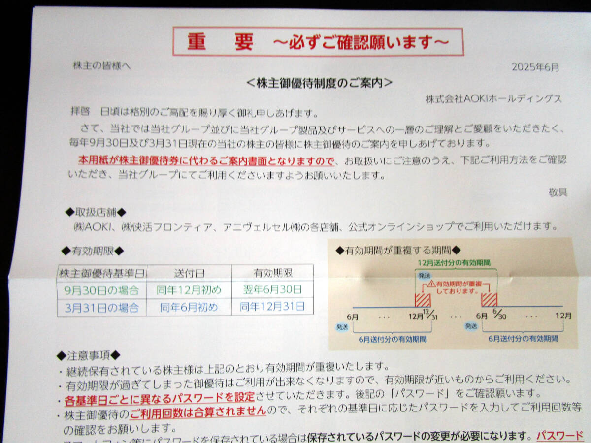 株主優待 | 株式情報 | 株主・投資家情報 | 株式会社AOKIホールディングス
