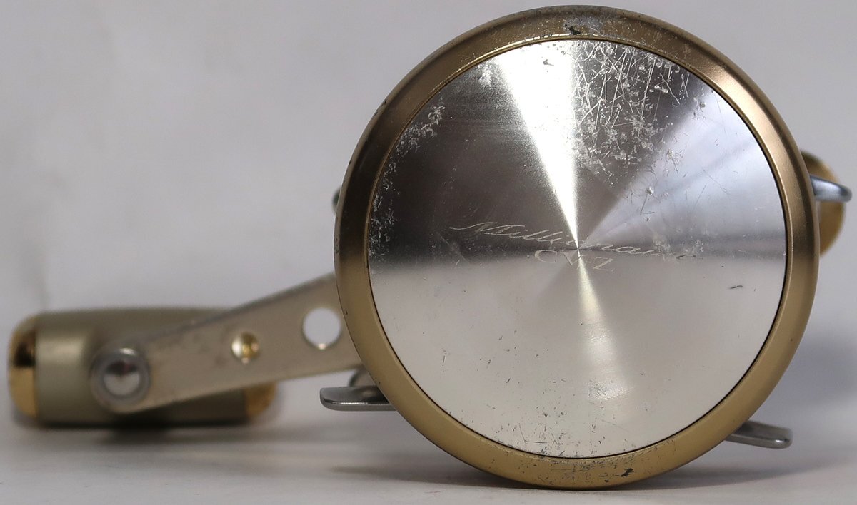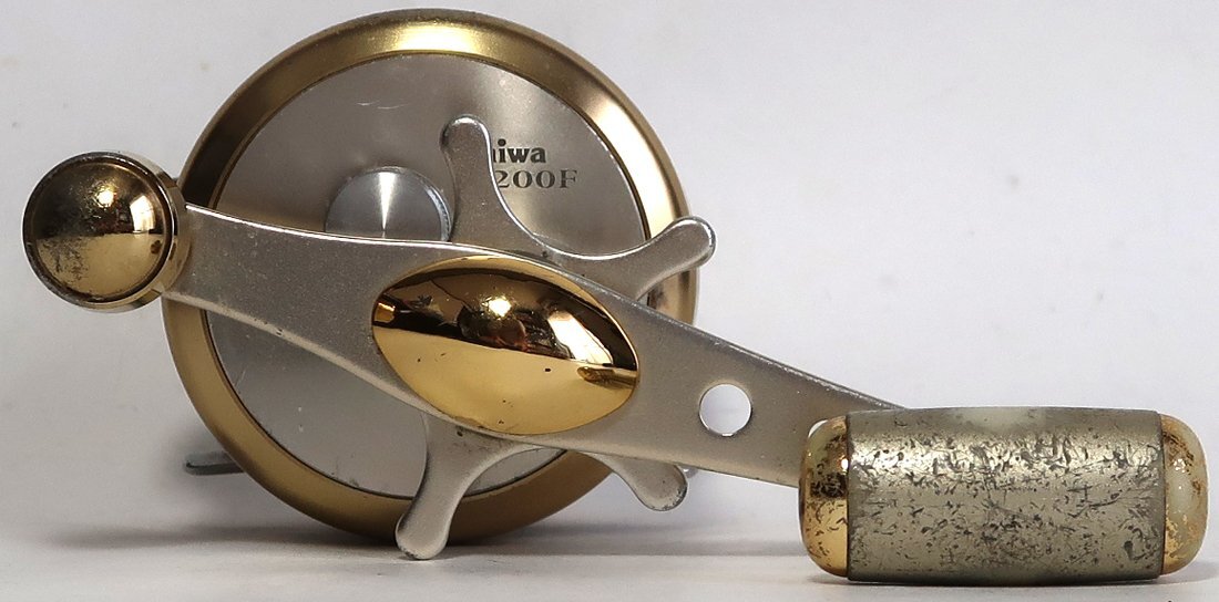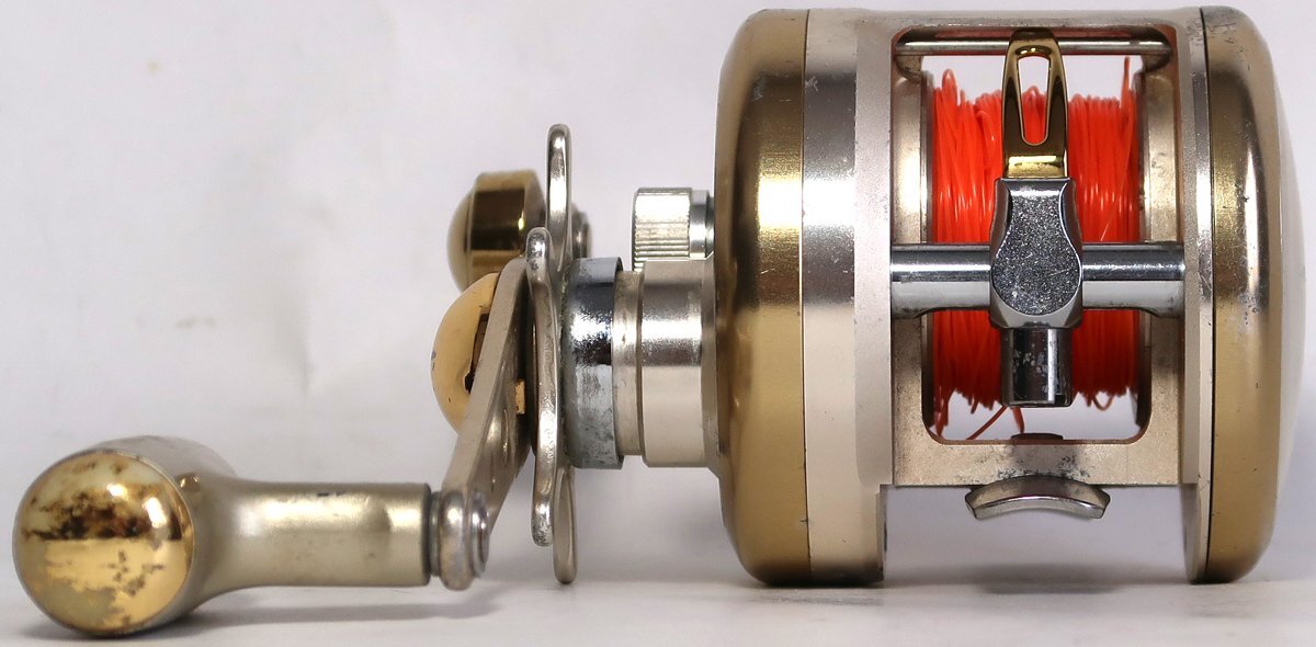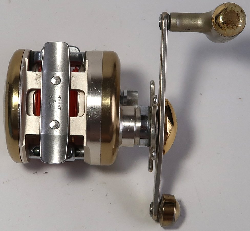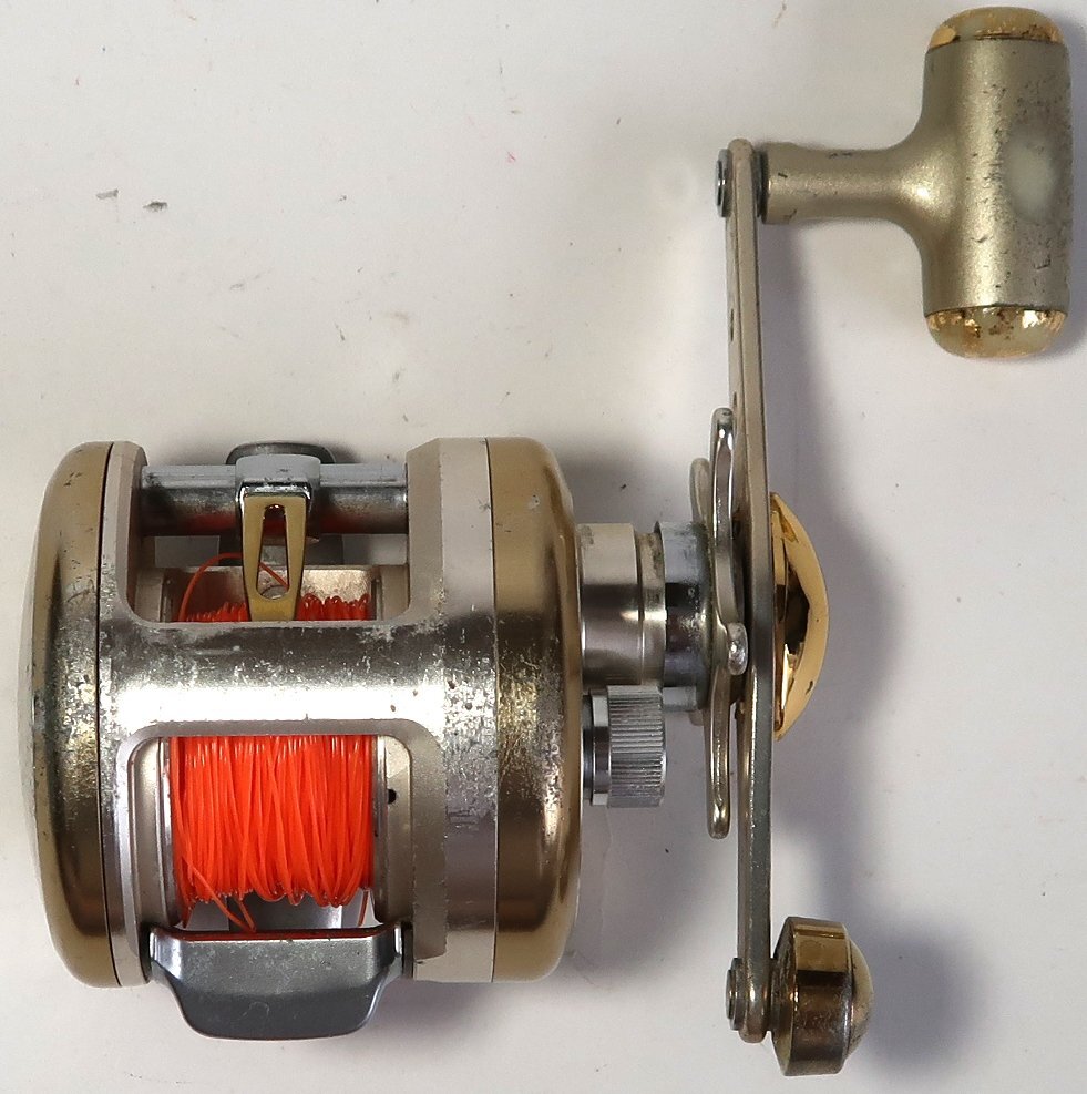 出品は画像のリールのみです。出品前に多少はクリーニングしております。使用品ですので汚れや擦れはあります。擦り傷が多数あります。下部(フットの側)の方に何かに当たってできた欠けている跡があります。フット横にあるネジ周りも少し欠けていて箇所がありす。メッキの剥がれがあります。テストしましたが操作はできましたし、動作しております。ラインは中古ですので長さはわかりませんし、どの程度強度が有るか分かりません。分かる事は以上です。発送後になにか問題がありましてもサポートは出来ませんし、返品やクレームは一切受け入れられませんのでそれを納得した上で御入札下さい。
