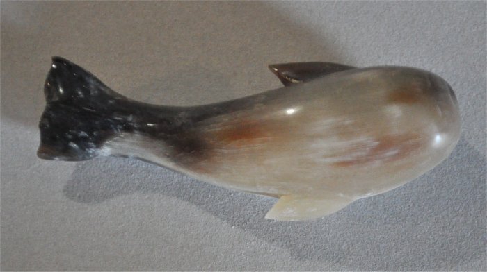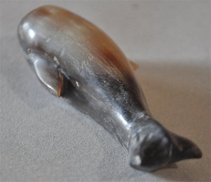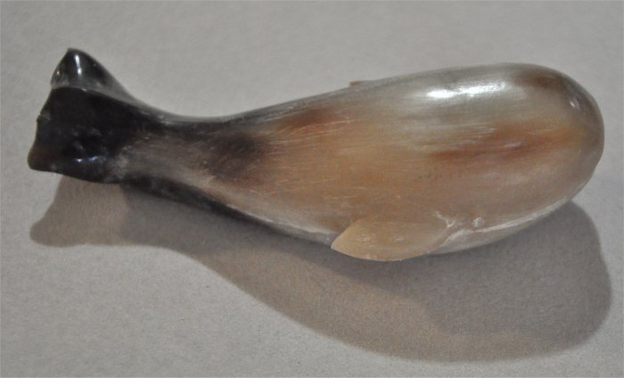 ナンタケットバスケット用の山ヤギ?の角の彫の立体クジラオーナメント