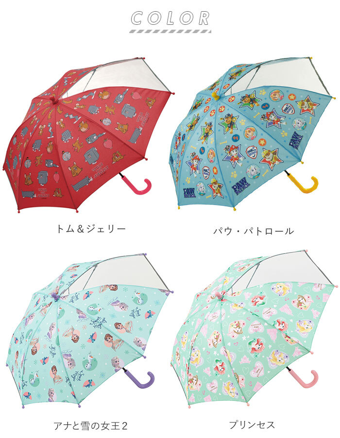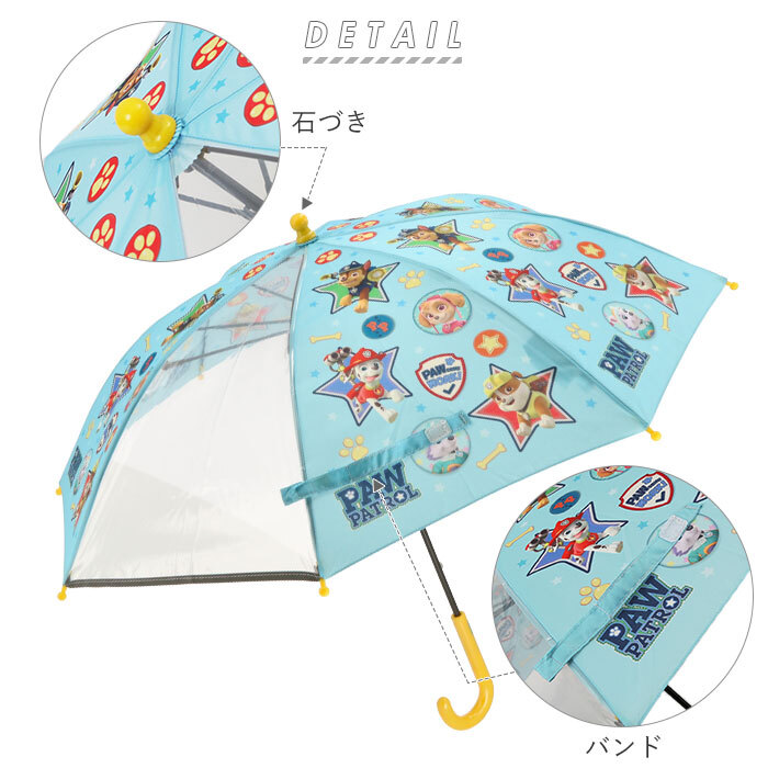 | 商品説明 | ・・透明窓付きだから前が見える!大人気キャラクターがとってもかわいい、子ども用ビニール長傘(親骨45cm)が新登場。 ・傘生地の一部にクリア素材を使用しているので、雨の日の通園・通学時でも前が見えて安心。さらに車のライトをピカッと反射するリフレクトテープも配置! ・親骨には、軽くて丈夫で折れにくいグラスファイバー骨を使用。 ・手動で開く手開き式でサッと開けて開閉がラクラク。 ・開閉部は指を挟みにくい安全カバー付きだから、小さなお子さまでも扱いやすい。 ・傘生地をまとめるバンドは面ファスナータイプで、裏面にはお名前が書けるスペース付きなのも嬉しい。 ・雨の日が楽しくなるポップなデザイン。お気に入りをチョイスしてみて♪ |