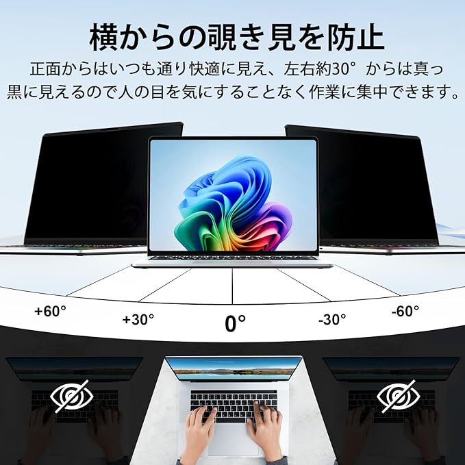 [高品質] このノートパソコン用プライバシースクリーンフィルムは、プレミアムPET素材で作られており、超薄型で水・油汚れを防止し、洗えます。9Hの高硬度で画面を傷から保護し、感度を保ち、指紋防止効果があります。