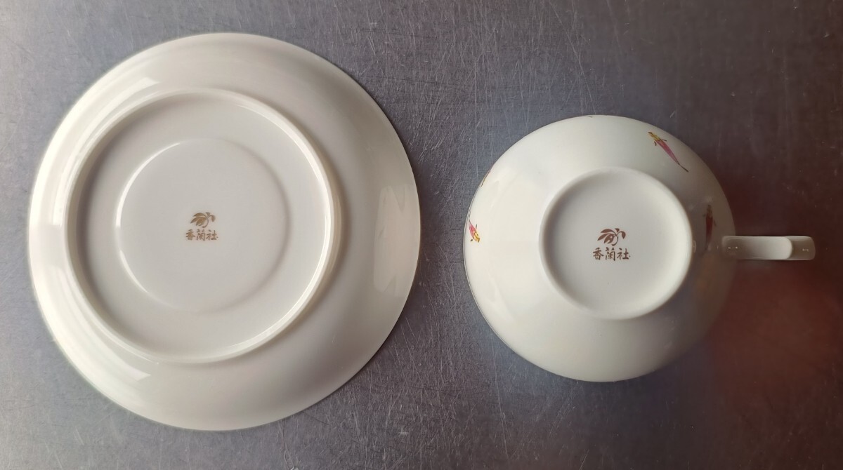 香蘭社 仲よしシリーズのカップ&ソーサー。メダカデザインです。配送は宅急便easy60サイズ。