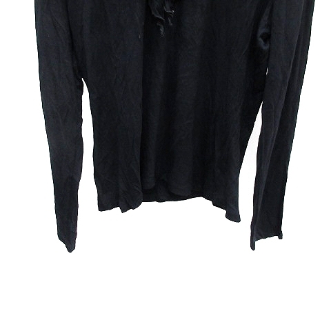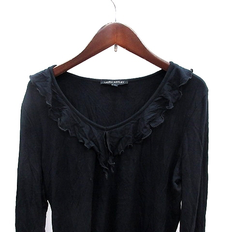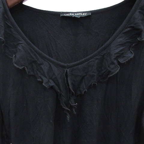 ローラアシュレイ LAURA ASHLEY カットソー Vネック フリル 七分袖 M 黒 ブラック /AU レディース