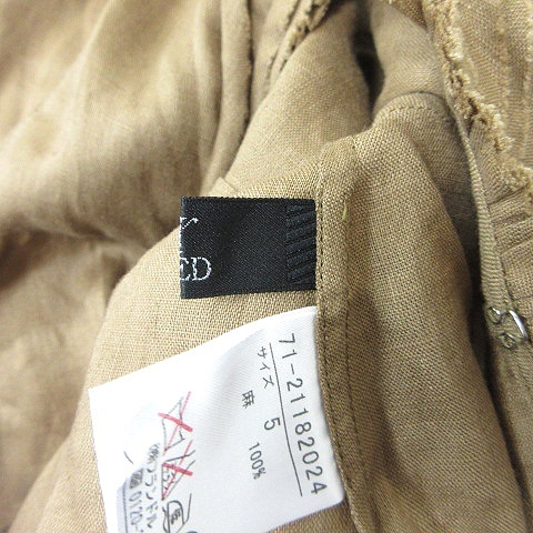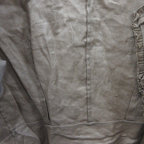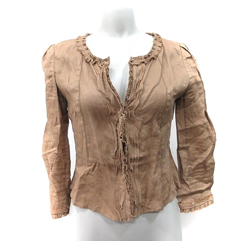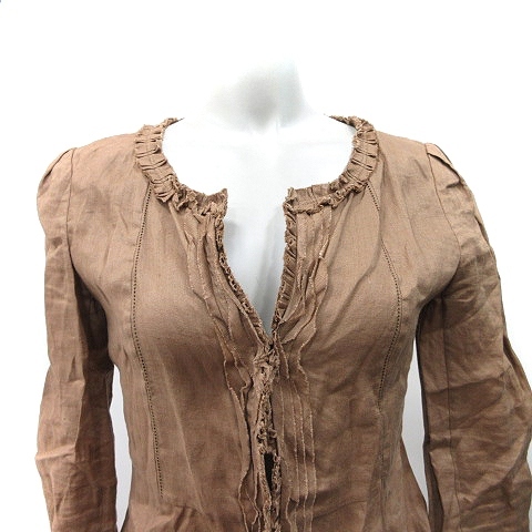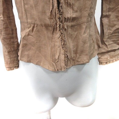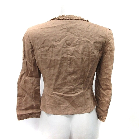 イネド INED ノーカラージャケット フリル 麻 リネン 5 XS 茶 ブラウン /YI レディース