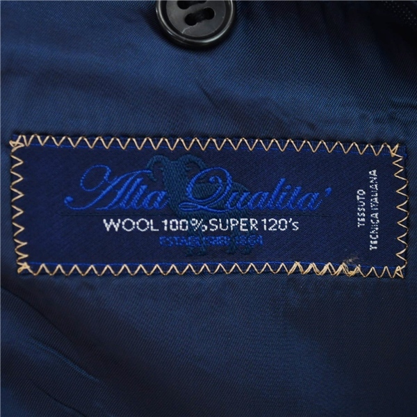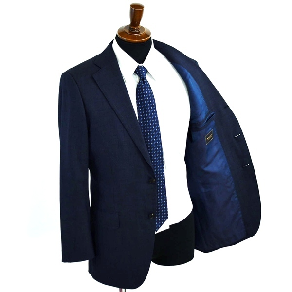 ・春秋対応。イタリア Alta Qualita製Super120’s生地使用。段返り。3つボタンシングル。袖口4つ釦本切羽。総裏地仕上げ。サイドベンツ。フラップポケット。ネーム刺繍なし。