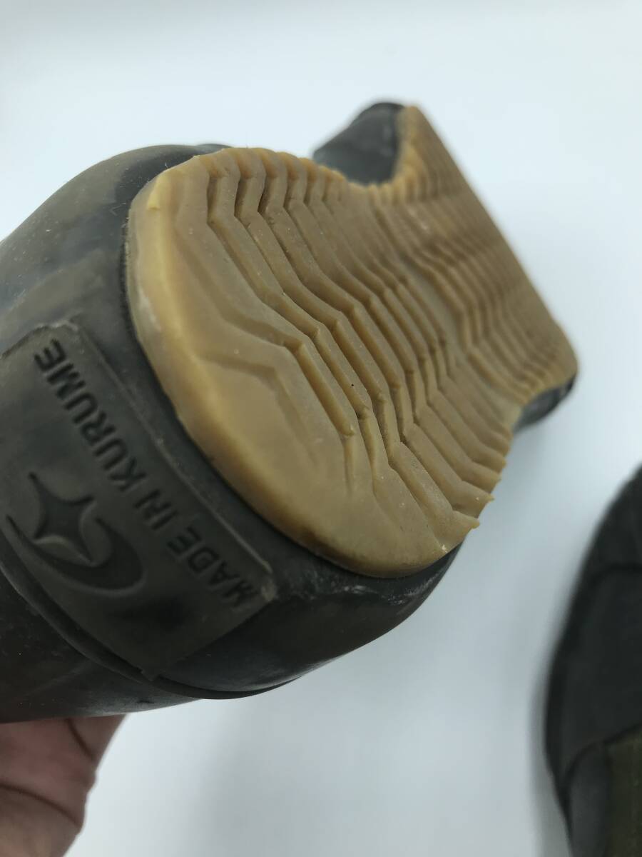 使用感少なめですが、ソールの若干のすり減り、ラバー部分の白化、長期保管に伴うスレや汚れがあります。