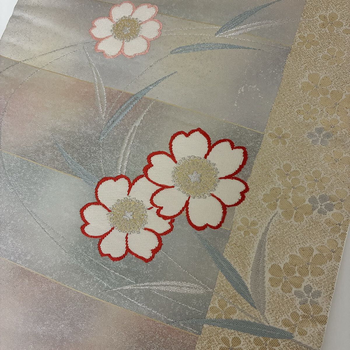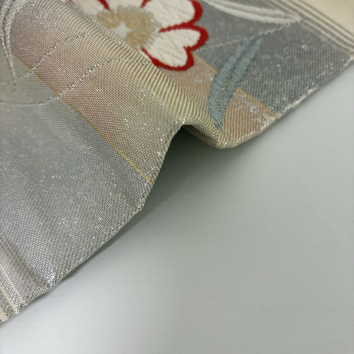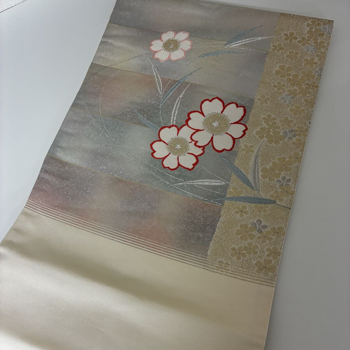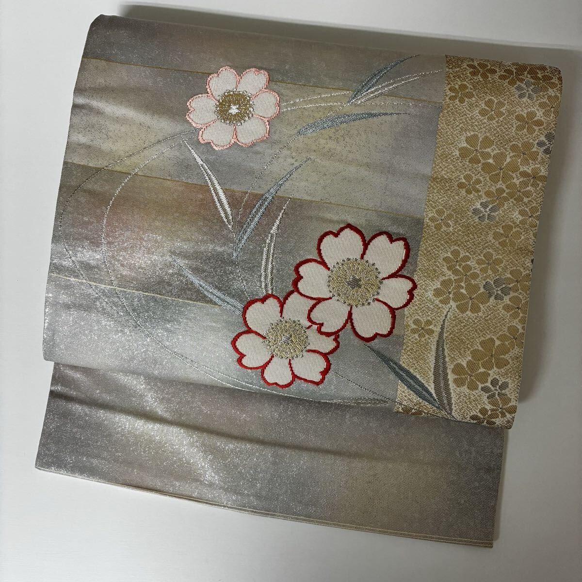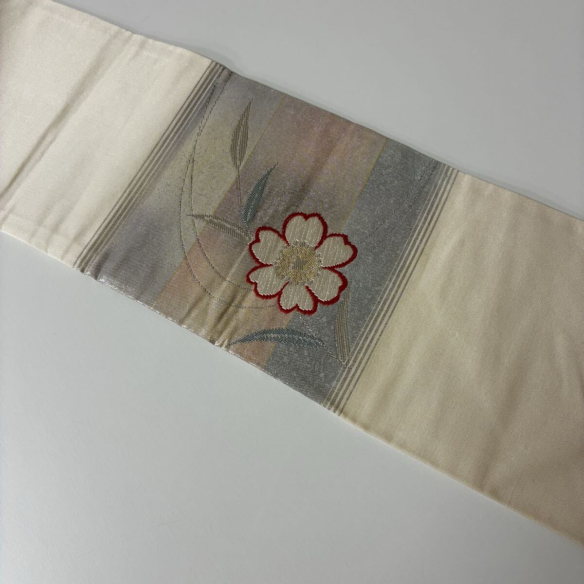 【楓】名古屋帯 正絹 刺繍 可愛い花 九寸KU-9949
