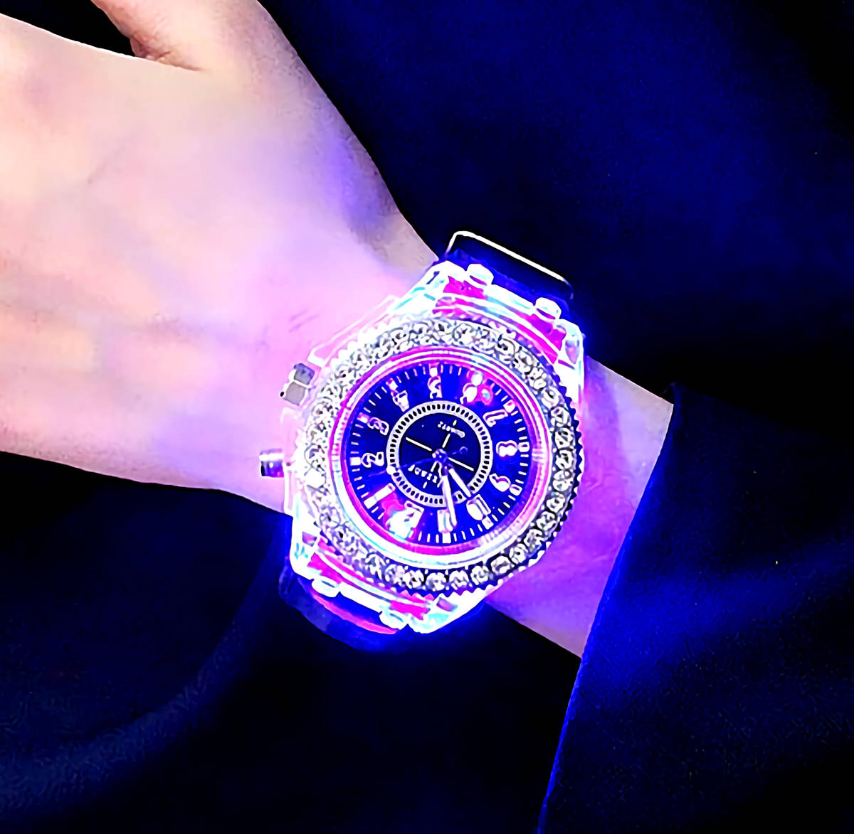 こちら闇夜に七色の輝きを放つブラックシルバーウォッチ腕時計となります。