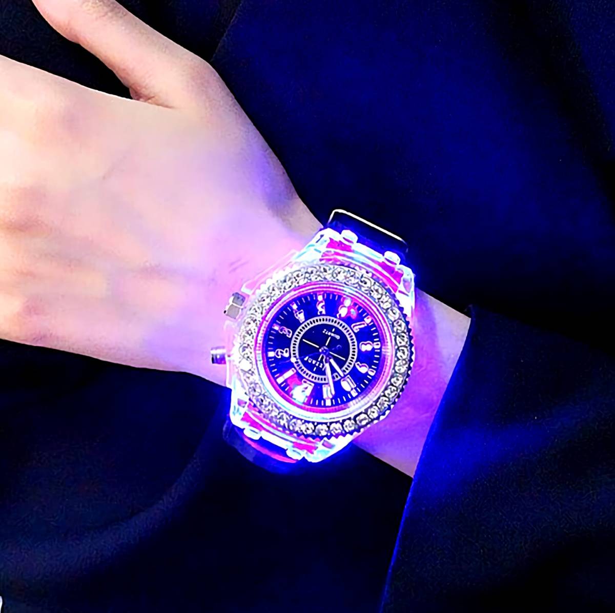 新品1円~★送料無料★闇夜の輝きレインボー光 ダイヤモンドブラックウォッチ シルバー腕時計 誕生日プレゼント旅行連休聖夜ギフト国内発送