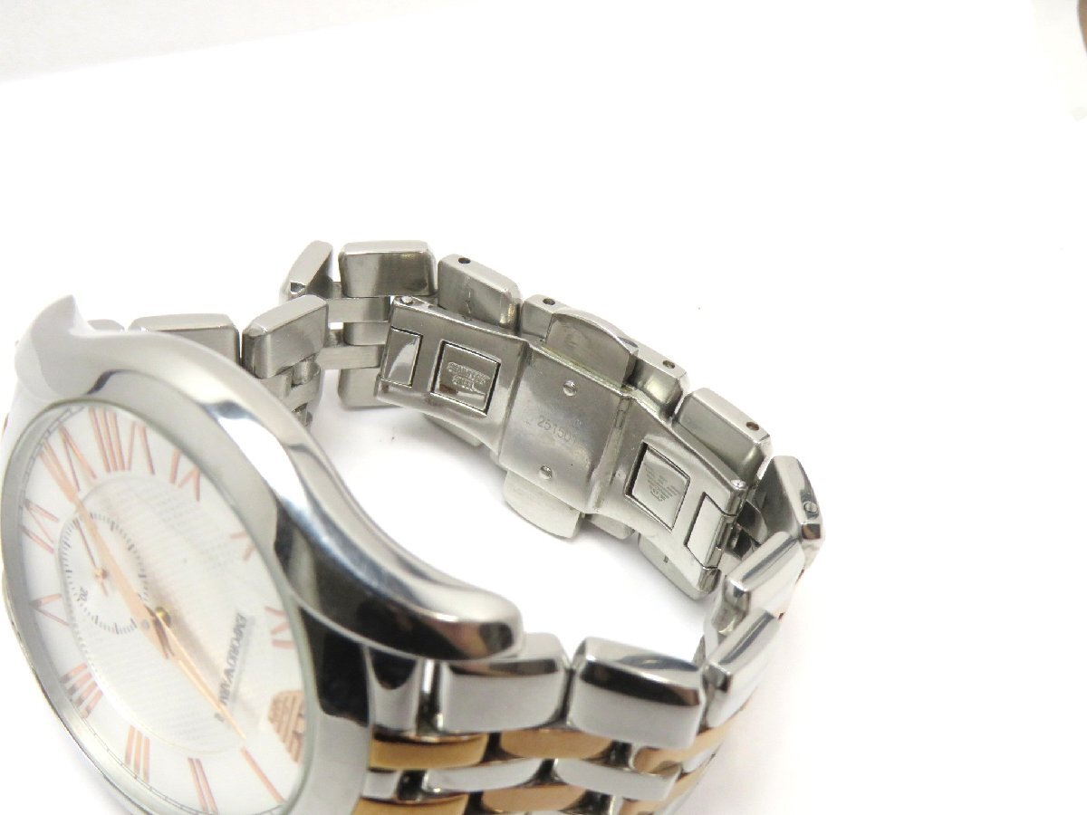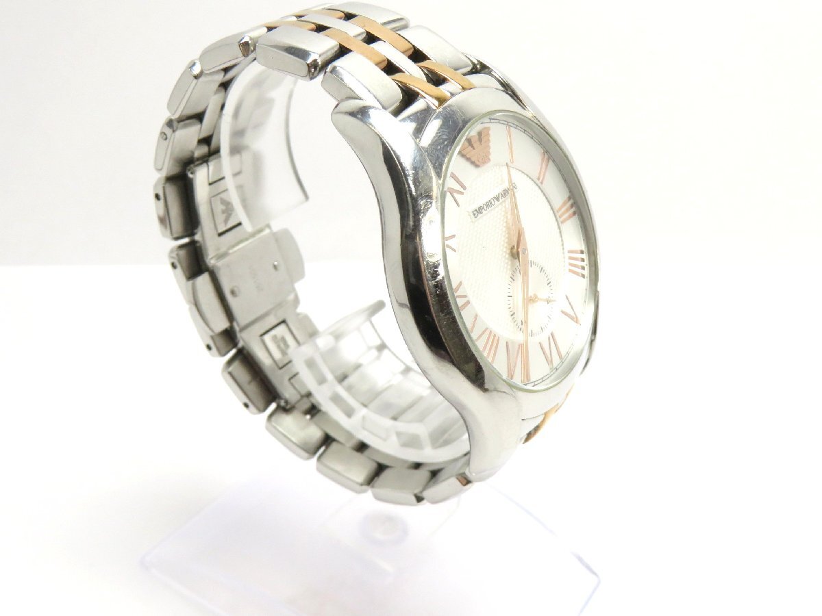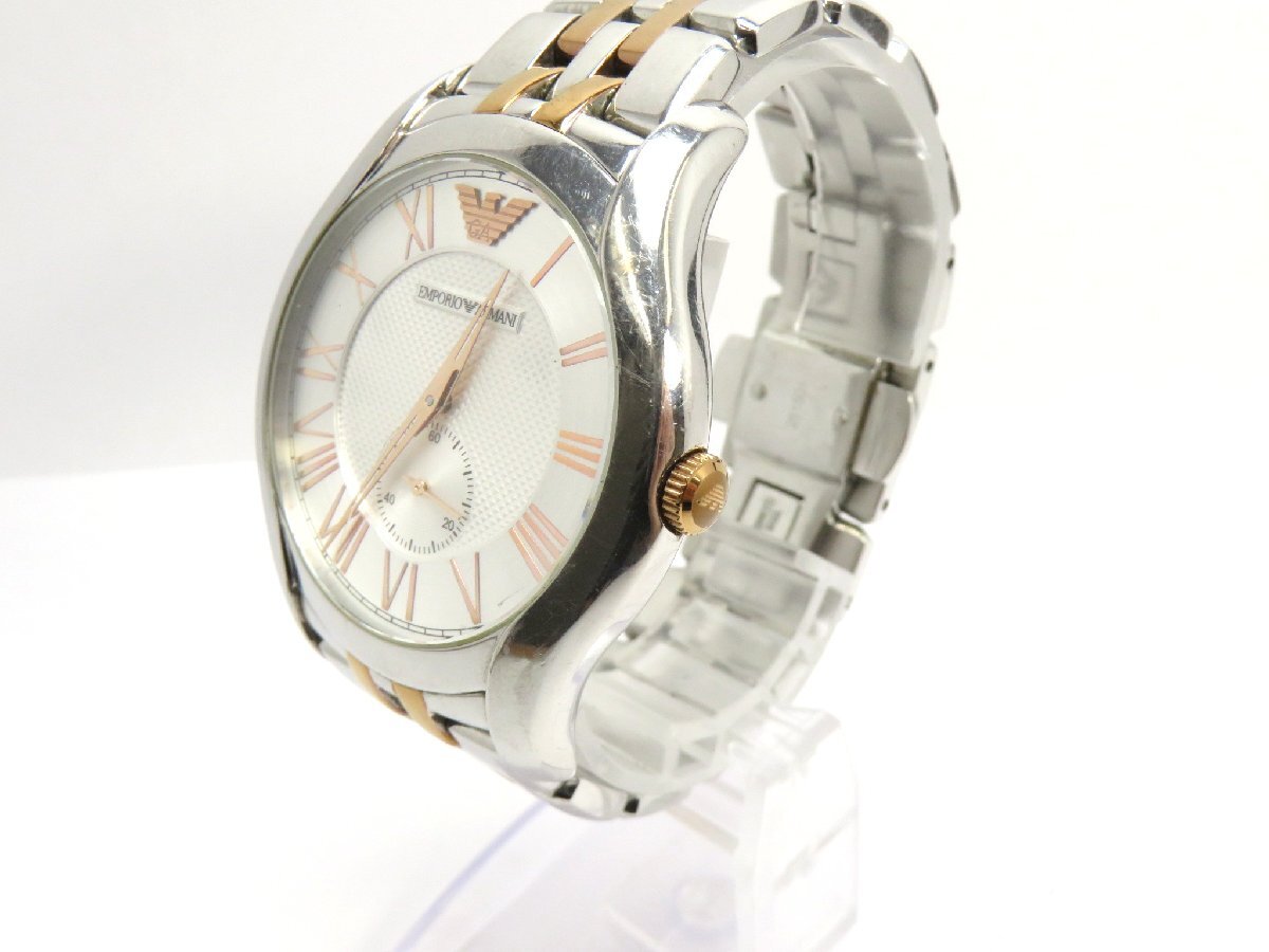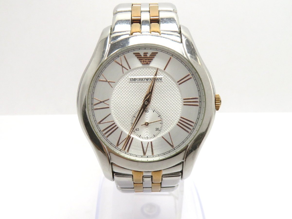 1円開始◆稼働◆ エンポリオアルマーニ AR-1824 シルバー クオーツ メンズ 腕時計 AC118