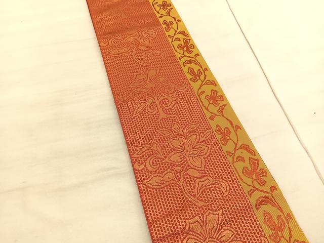 【正絹】 詳細に関しましては、画像をご確認ください。 本場筑前博多織は、 福岡県福岡市博多区やその周辺で生産される絹織物です。 仏具のひとつである独鈷、華皿を基にした幾何学模様が織られています。 江戸時代に筑前藩主だった黒田長政が幕府への献上品にしたことから、 博多献上、献上博多とも呼ばれます。 横畝が際立って見える経畝織りという織りになっています。 30〜60本の細い経糸を使うため、こしやはりがあり、 地合が硬く、光沢感があります。 きちんと締まり、くずれにくい、締めやすい帯といわれています。 大変上質な逸品になります。 お安く出品致しますので、是非この機会にいかがでしょうか? ※片側未かがりですが着用には問題ありません。 |