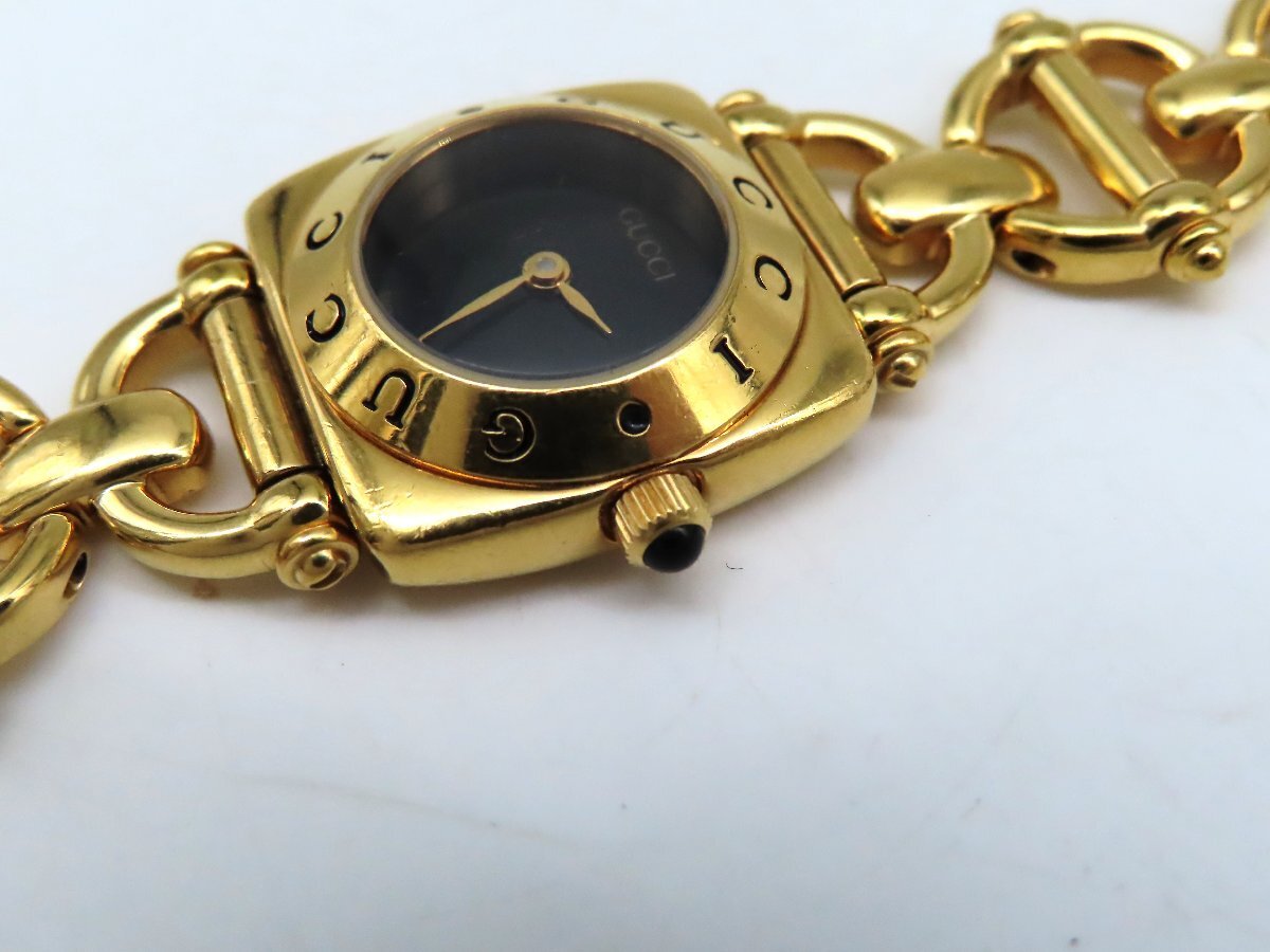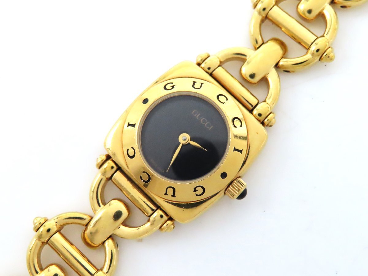 1円 グッチ 6400L GP ブラック文字盤 レディース 不動 QZ 26322 LHRE