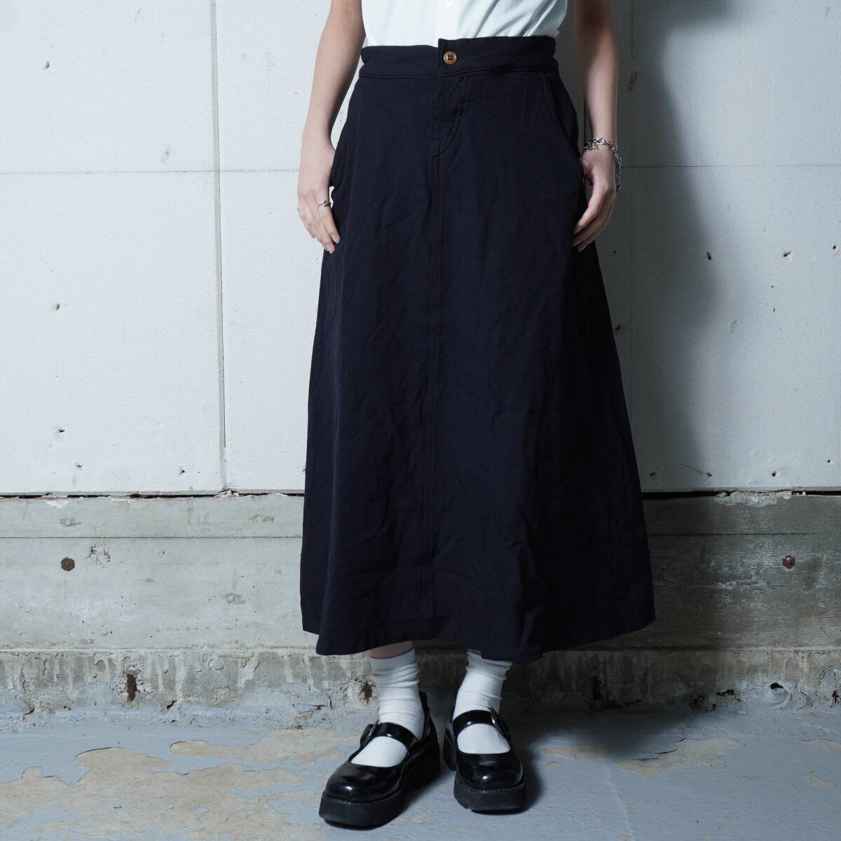 ・深みのあるダークネイビーが魅力的なロングスカートです。