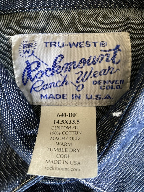 ロックマウント Rockmount L/S Denim Western Shirt MADE IN USA ロックマウント 長袖デニム ウエスタンシャツ USA 14.5×33.5 米国
