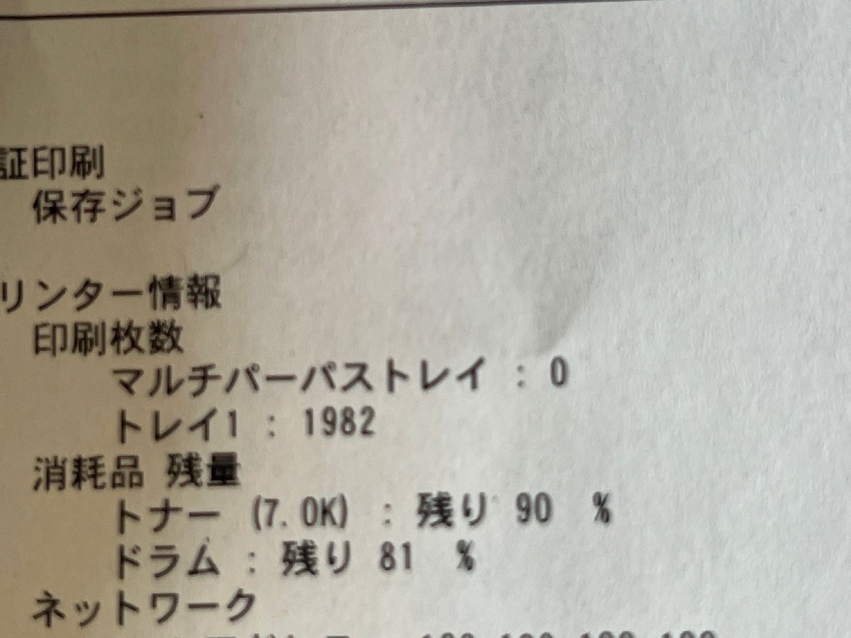 写真は前回のです、実際商品のシールが外しました(ブルー色シールとモニターシール)。 メモリ容量:512MB。仕様はこちらです。部品残量等は3枚目の写真です。 現在使用中純正ドラムとトナー等印字問題無いですが、弊社保管中また運輸中不良可能性がありますので消耗品は保証外です。 カウンターと残量出荷前テストにより多少変わります。 弊社動作と部品だけ点検整備して、設定のサポート、ID等番号、メンテナンスに関しては一切お受けしておりませんのでご了承お願いします。 動作、音、内部の状態等は全部点検済。 パソコンに接続しテストプリントは正常です。 |