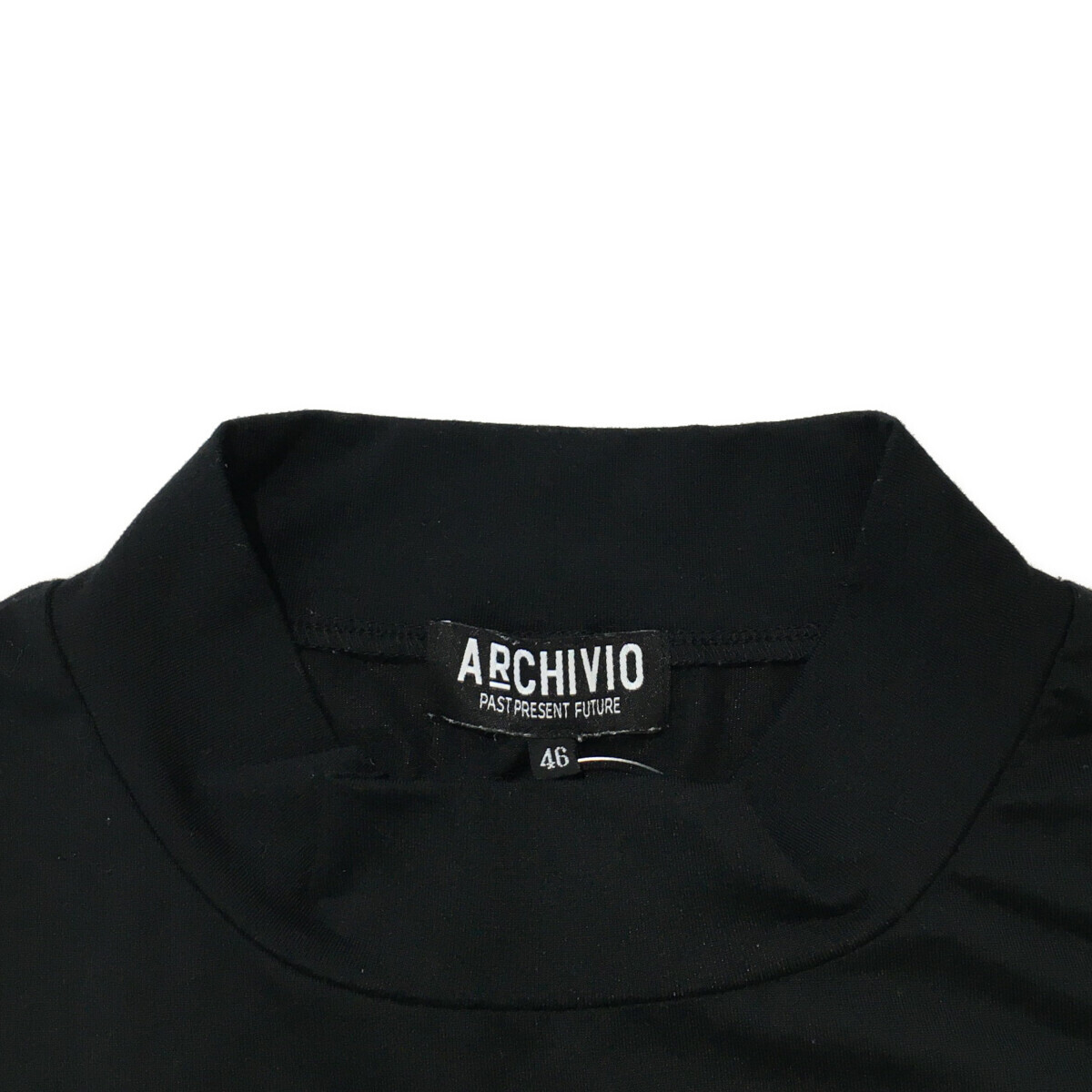 coco 中古【値下げ】 アルチビオ archivio メンズ 半袖シャツ 46(M) 黒 ブラック モックネック バックプリント ネコパケ発送可 102063