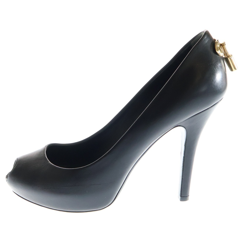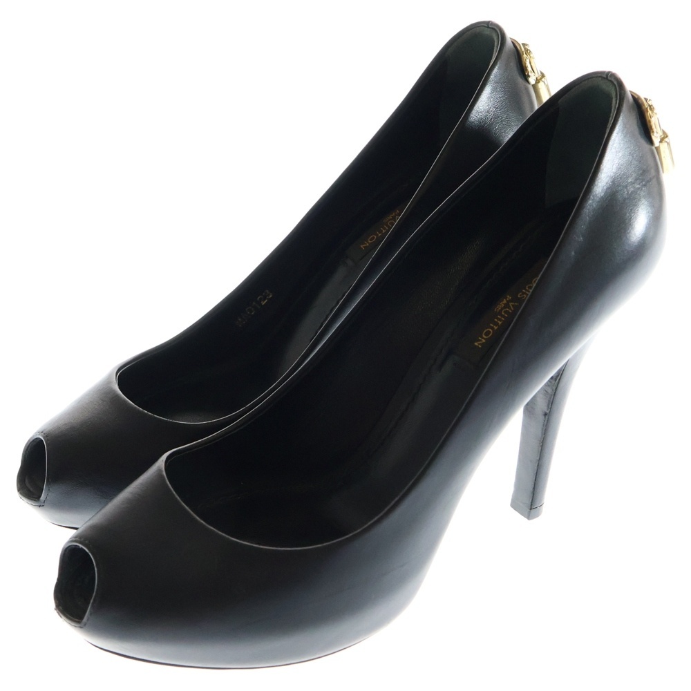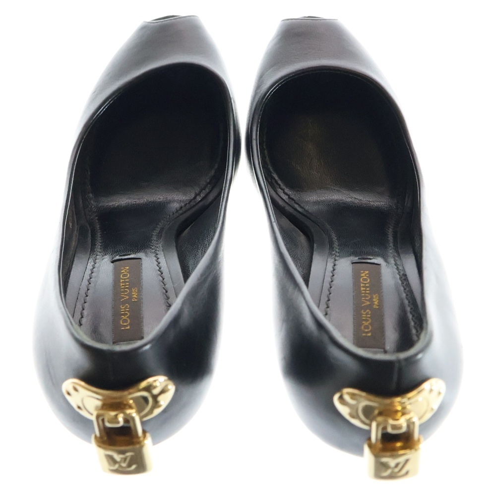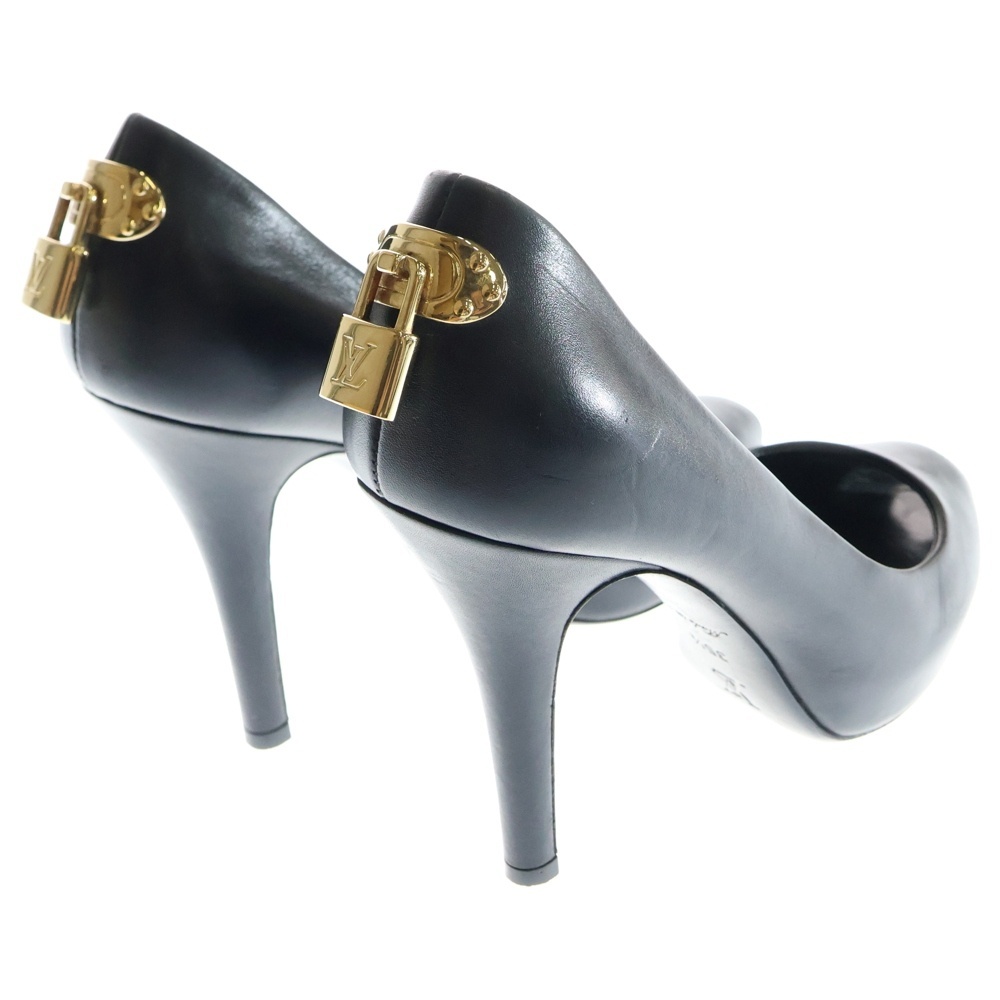 LOUIS VUITTON ルイヴィトン パドロック ヒール オープントゥ レザー パンプス シューズ ゴールド金具 ブラック レディース