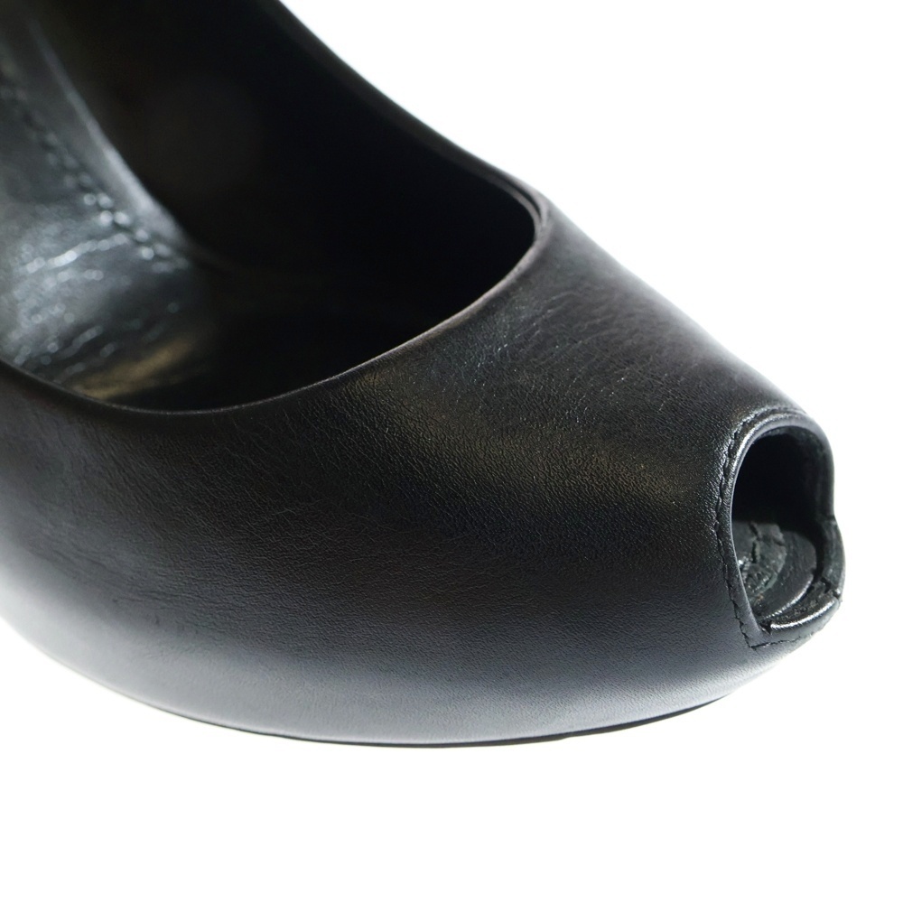 品名パドロック ヒール オープントゥ レザー パンプス シューズ ゴールド金具 ブラック レディース