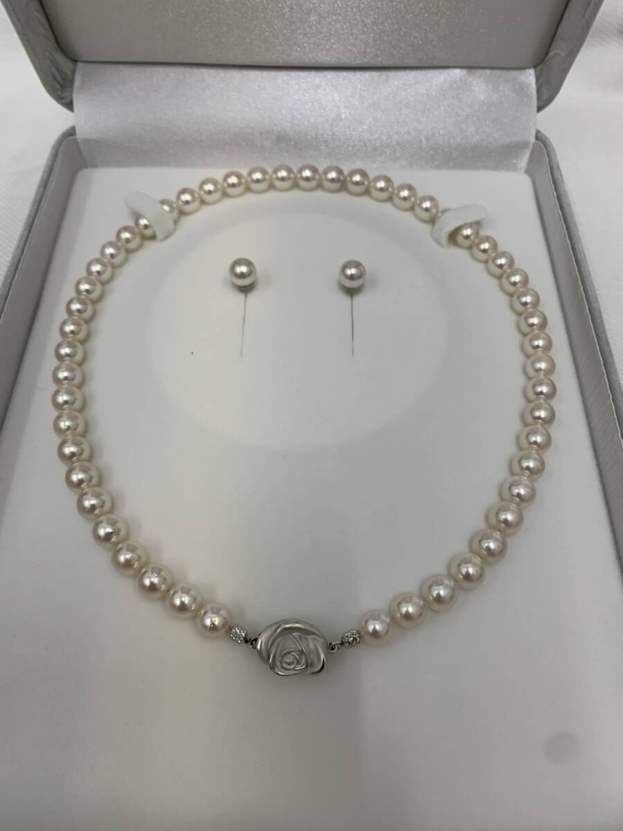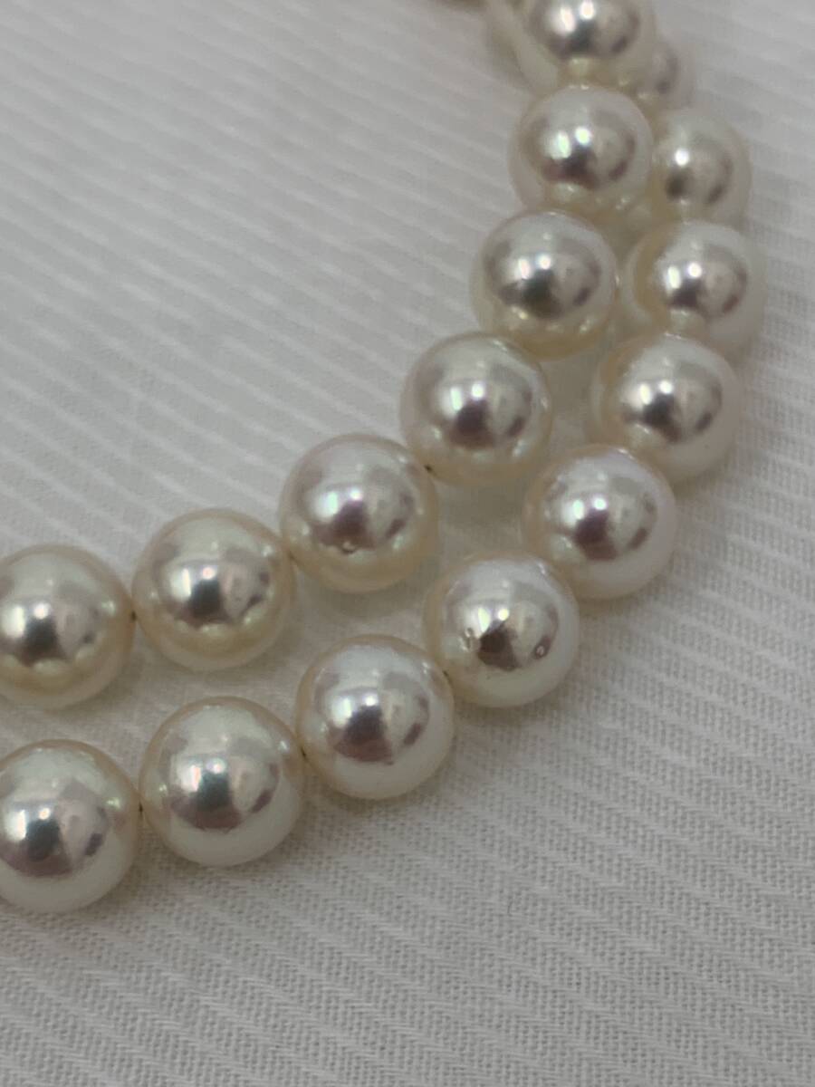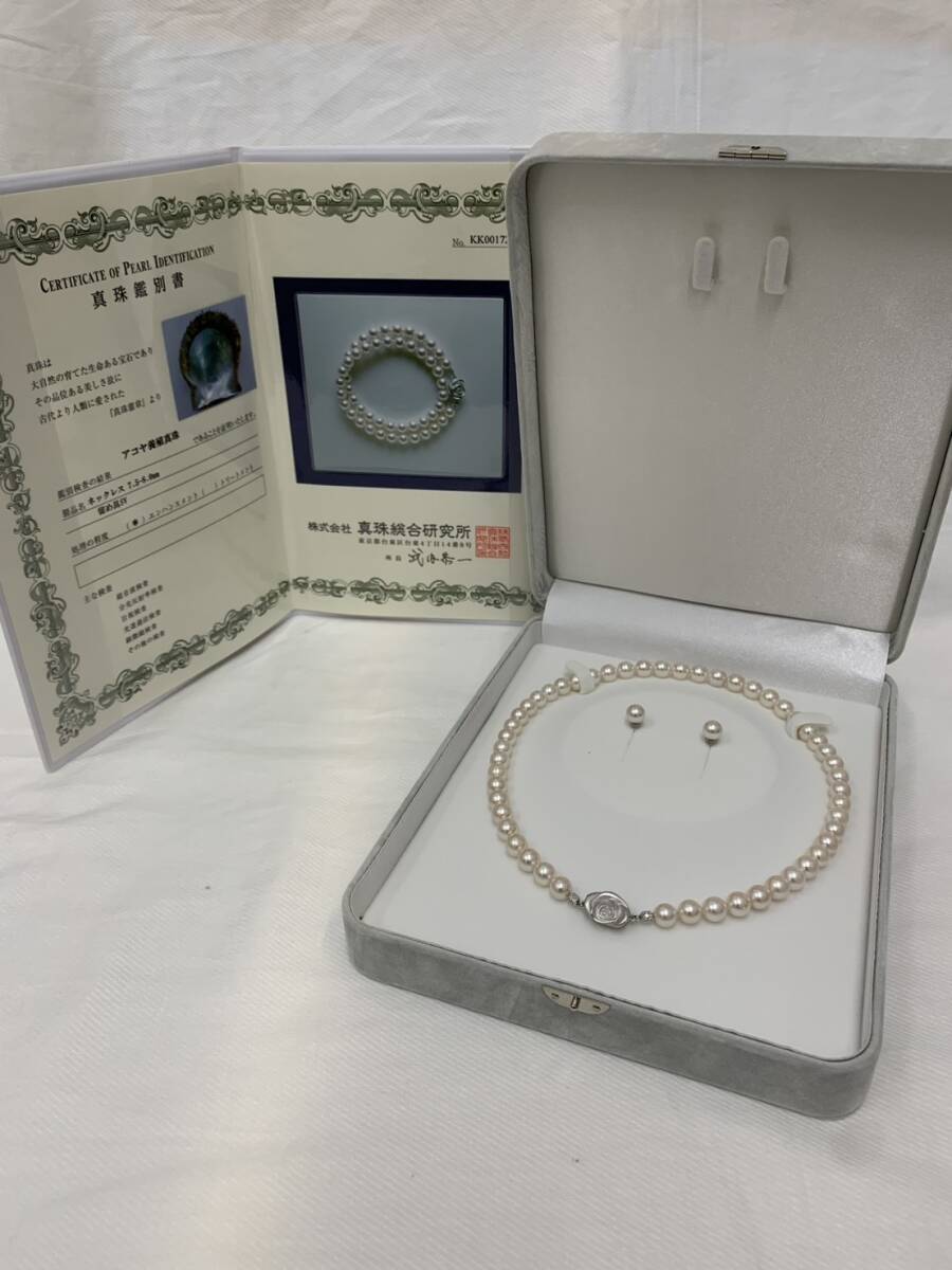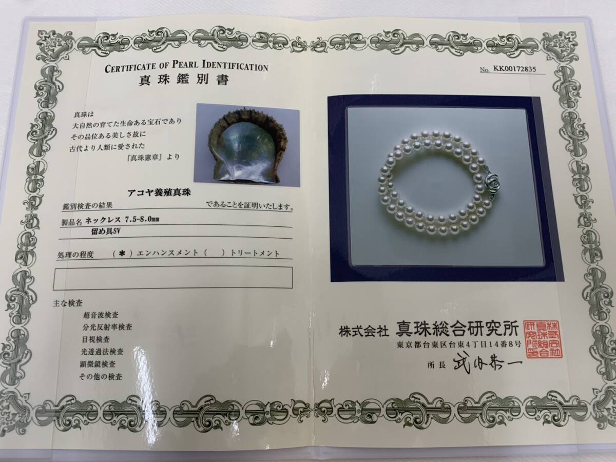 1円~ パール アコヤ養殖真珠 ネックレス 7.5-8mm 約40㎝ 留め具 シルバー/K14WG イヤリング 7.5mm 真珠総合研究所鑑別書 中古品 冠婚葬祭 | ||