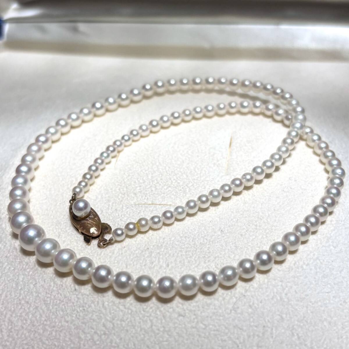 【テリ最強/K18刻印】あこや真珠 パール ネックレス 約3mm-6mm シルバー金具 pearl jewelry necklace 12g 42cm アコヤ 本真珠