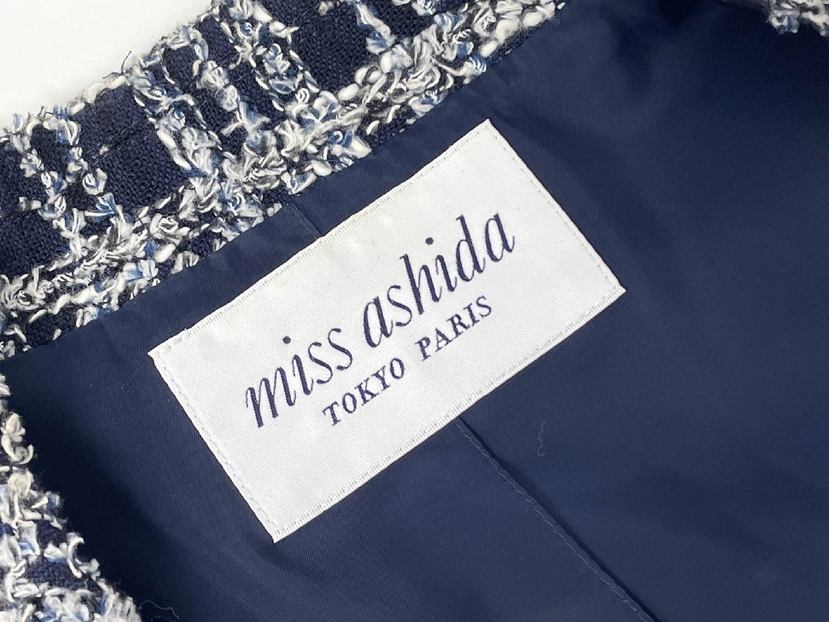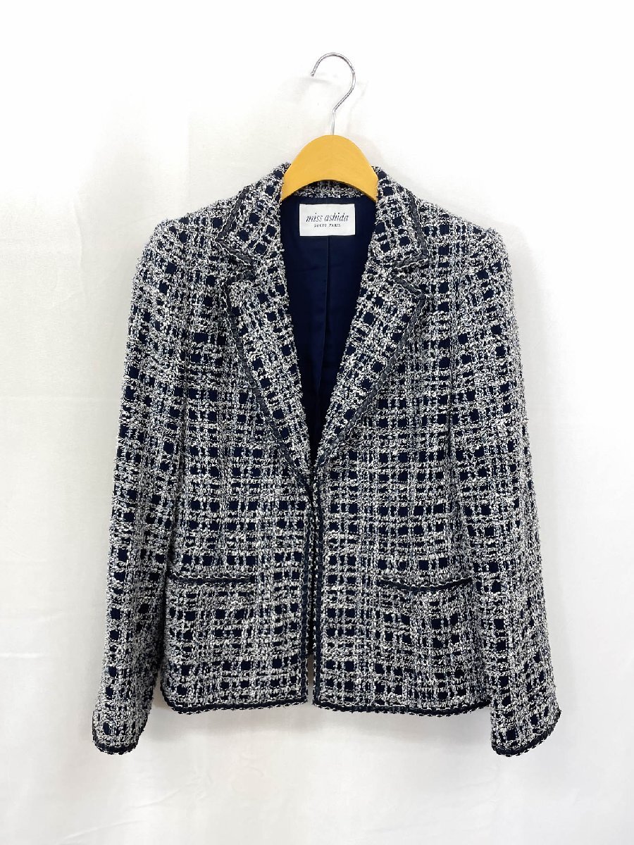 HH超美品【miss ashida ミスアシダ】CJ3504 シングル ツイードジャケット (レディース) sizeTALL11 ネイビー系 チェック柄 ◇32LJ1391◇