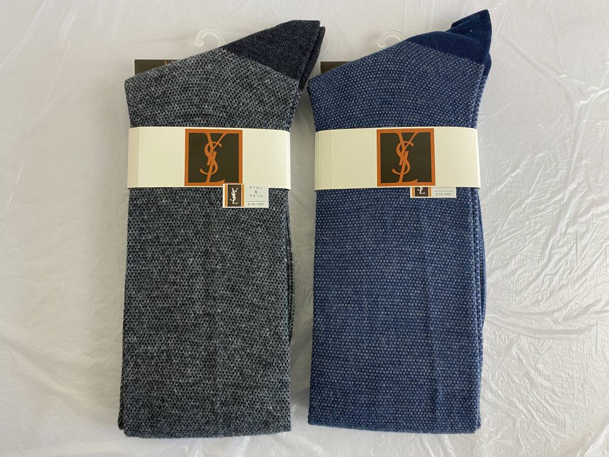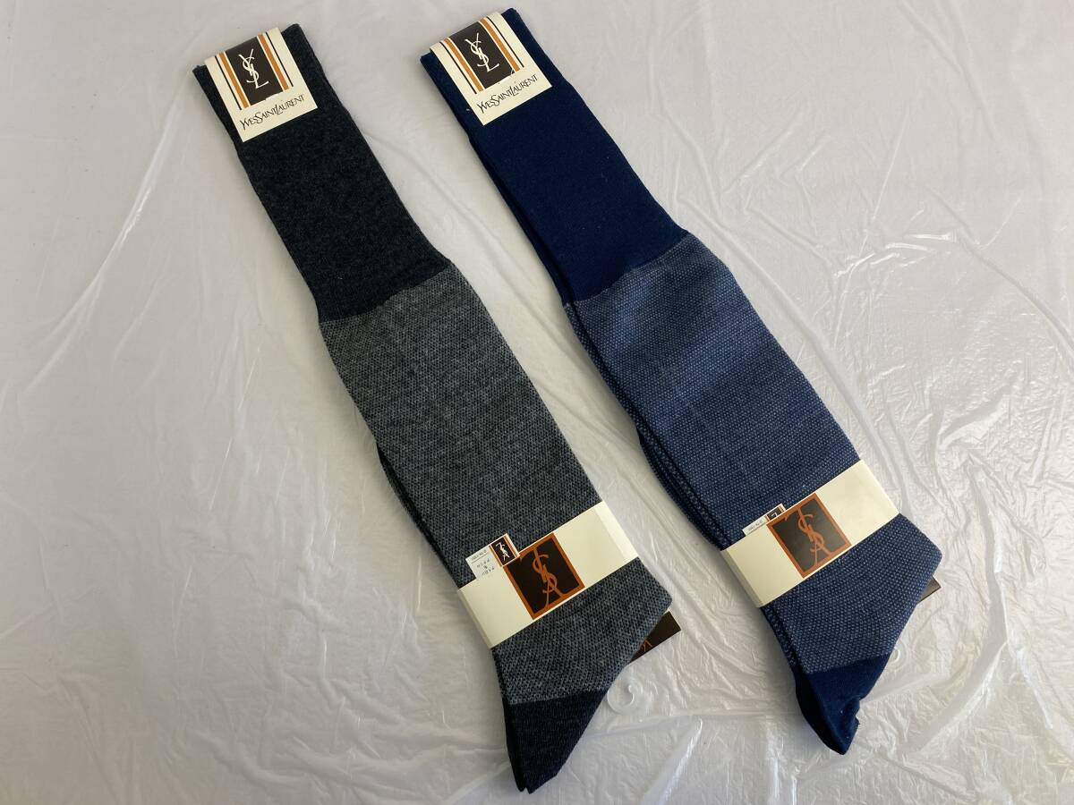 イブ・サンローラン ロングホーズ ネイビー ブラック 2点セット ハイソックス ビジネス メンズ 25㎝ 紳士 黒 紺 YSL Yves Saint Laurent |