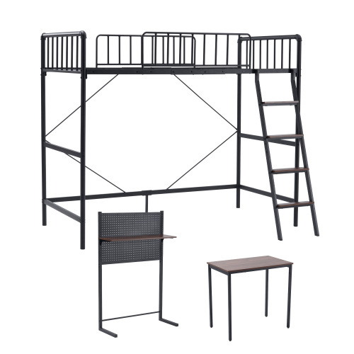 【ブラック】システムベット ロフトベッド シングルパンチングボード 収納付き デスク付き 棚付き 北欧風 スチール 耐震