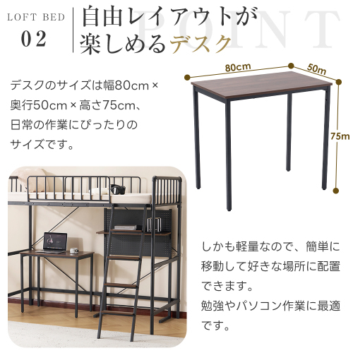 • 【様々なシーンで活躍】仕事・勉強スタイル リラックススタイル リビングスタイル ロフトベッドでお部屋を自由にデザイン!