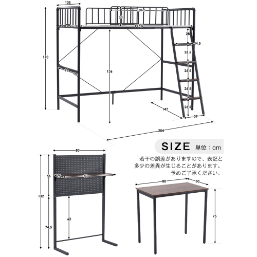 • 【デスク・パンチングボードと自由組み合わせ!】この商品は、ベッド、デスク、パンチングボードがそれぞれ完全に独立していながらも、組み合わせると見事にマッチし、ベッド下の空間に自由に配置できる、使い勝手抜群のセットです。
