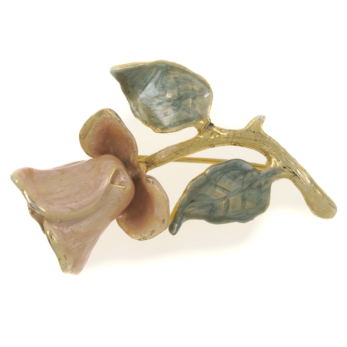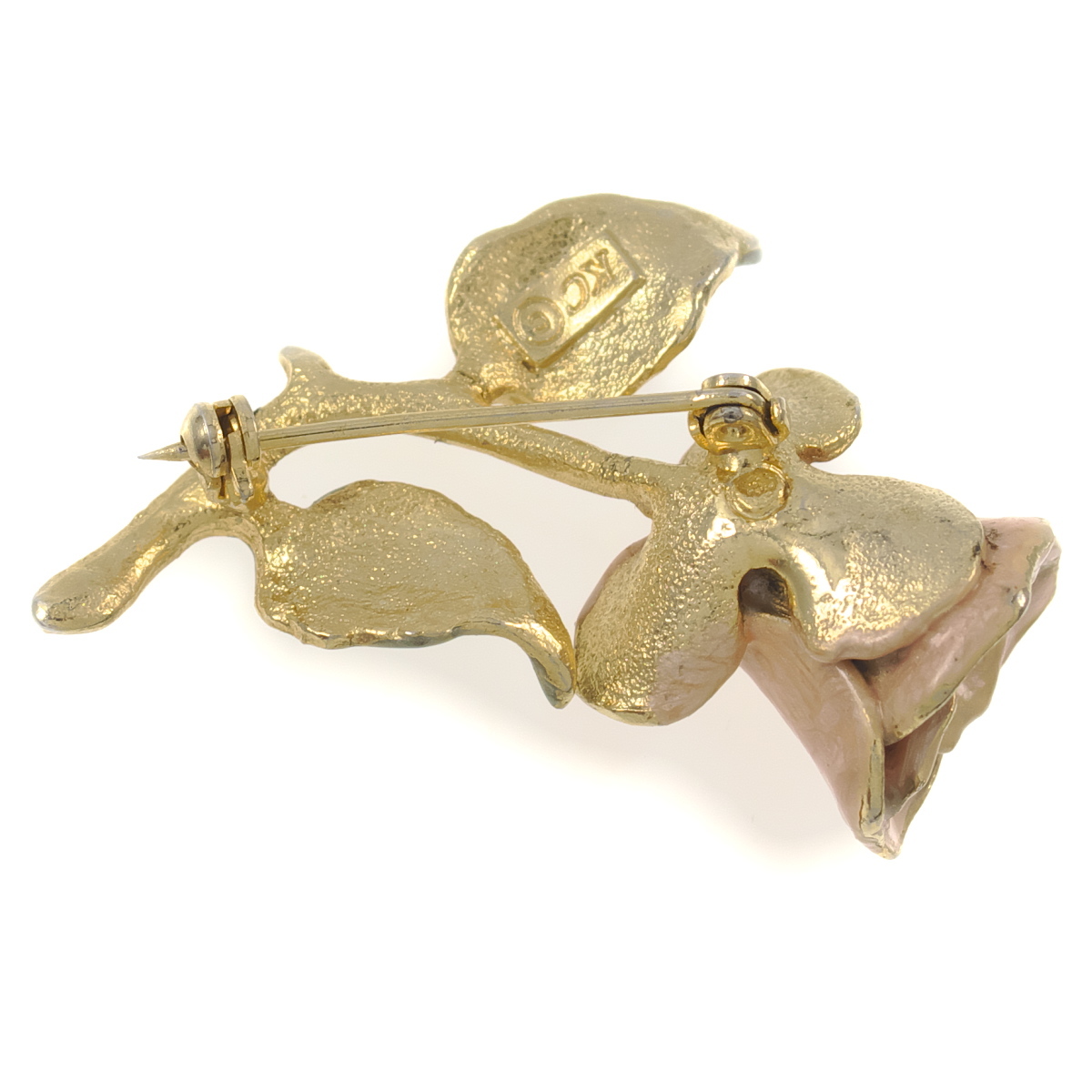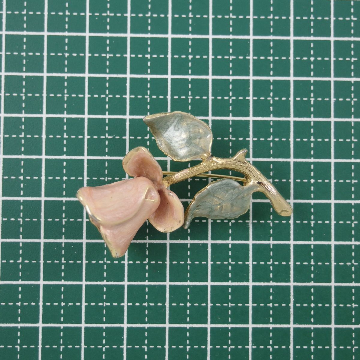 A10737◆【KC】◆ フラワーモチーフ エナメルペイント ピンクの花 ◆ ヴィンテージブローチ ◆