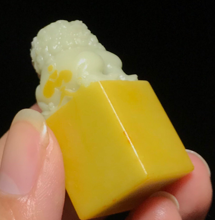 ◆寿山石とラオス石は気温の変化から守るために油(昔の化粧品に使われているもの)を塗ってあります。購入後も定期的に塗ることをお勧めします。当店ではほとんど扱っていませんが高級な寿山芙蓉石は油を塗ると逆に変色や割れを起こしてしまいますのでご注意ください。顔に擦って顔に付いている油をつけるのが一番無難です。一部の青田石と昌化石には蜂蝋を塗ってあります。紙やすりで落として使用してください。写真には写っていませんが後から小さい識別用のシールを貼ってありましてご迷惑をかけしますがそのまま発送させていただきます。