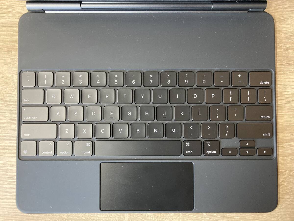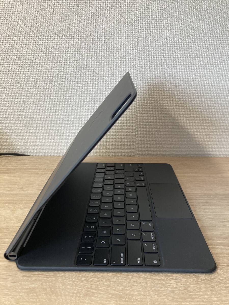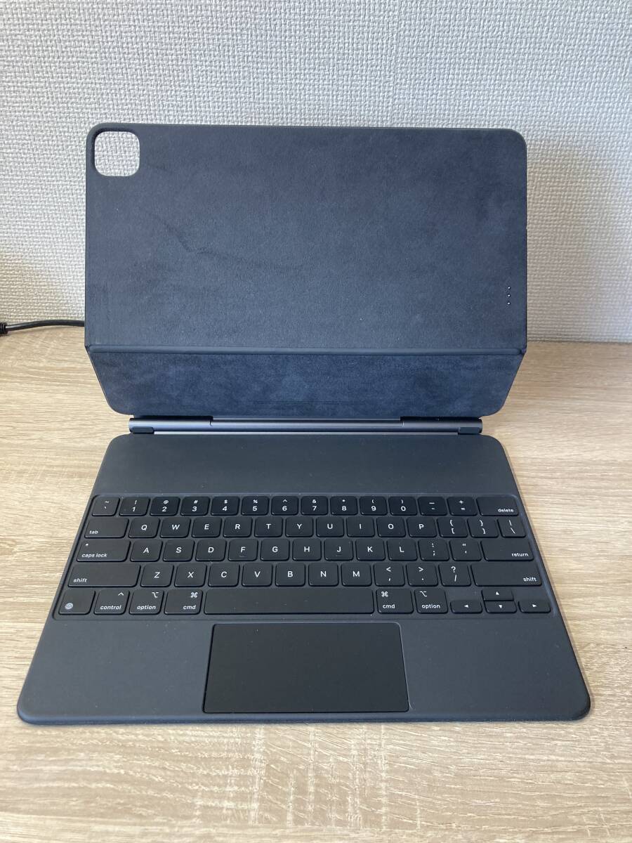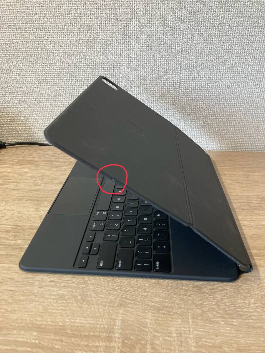iPad Pro 12.9 用のUS配列 Magic Keyboard です。多少のテカリ・打痕(赤丸)等はありますが、破れ・ほつれなどはありません。比較的キレイな状態と思いますが写真でご判断ください。機能は問題なしです。私のiPad pro は第6世代ですが問題なく使用していました。レターパックプラス送料無料です。