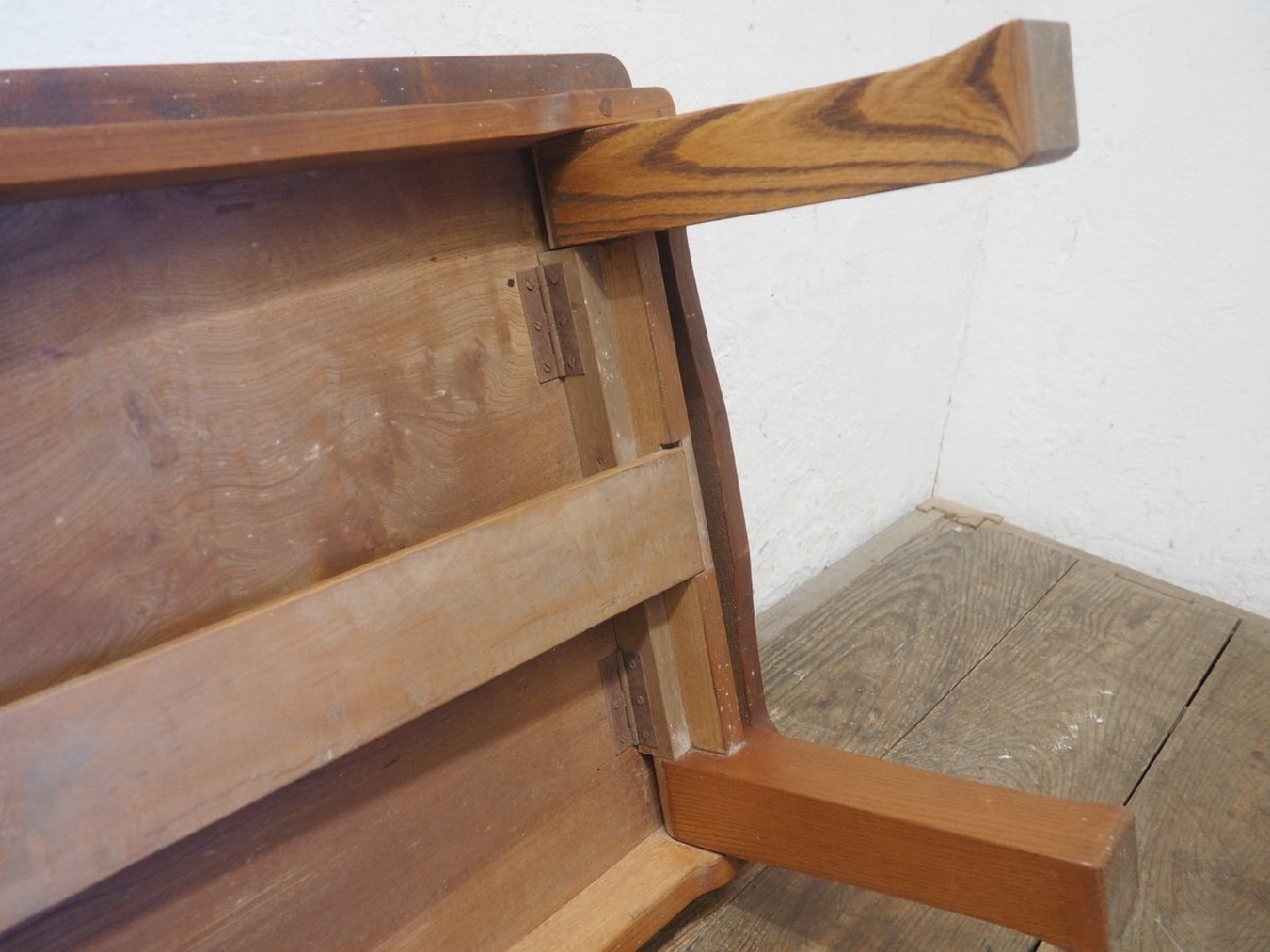タW1657◆②天板W151cm×D54cm◆折り畳み式◆欅の古い木製ローテーブル◆ケヤキ 文机 作業台 展示台 陳列台 レトロ アンティークJ笹4