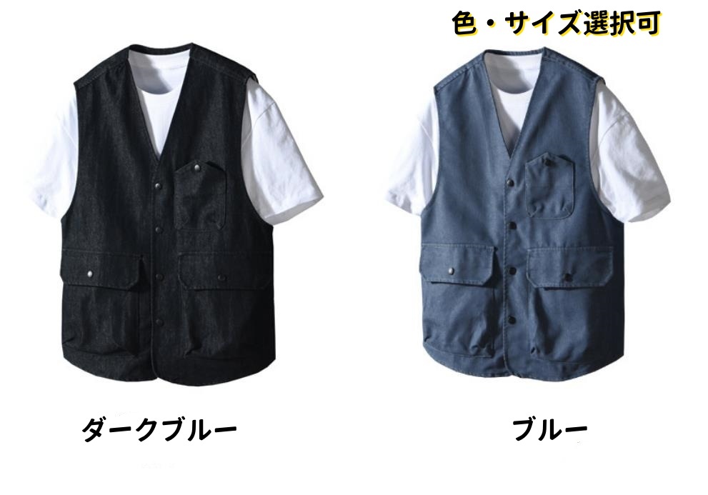 デニムベスト メンズ★新品  袖なしジャケット チョッキ ジレベスト ワークベスト 春秋服 カジュアルベスト【Z884】ブルー XL