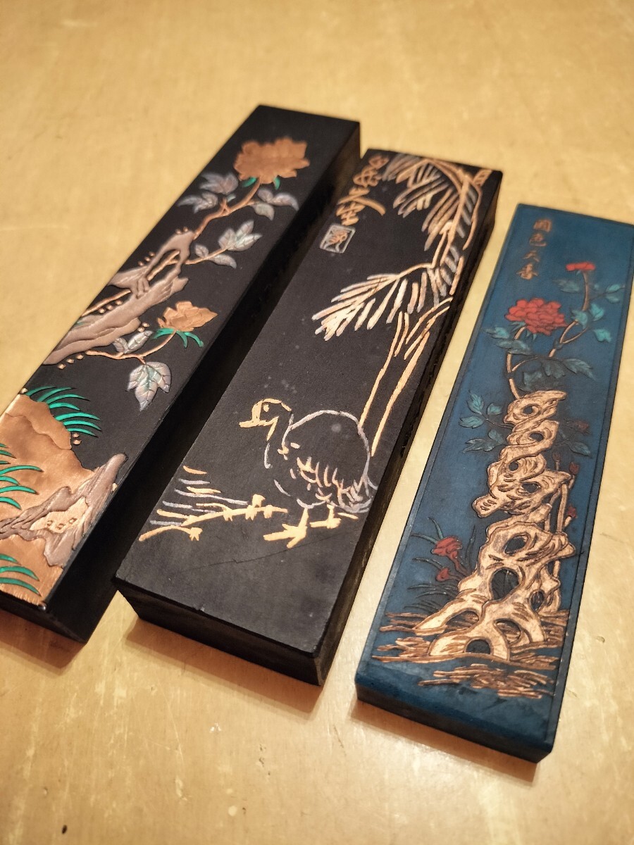 サイズ(約) 富貴図 貢煙 徽歙曹素功堯千氏製 縦15.7cm 重さ137g