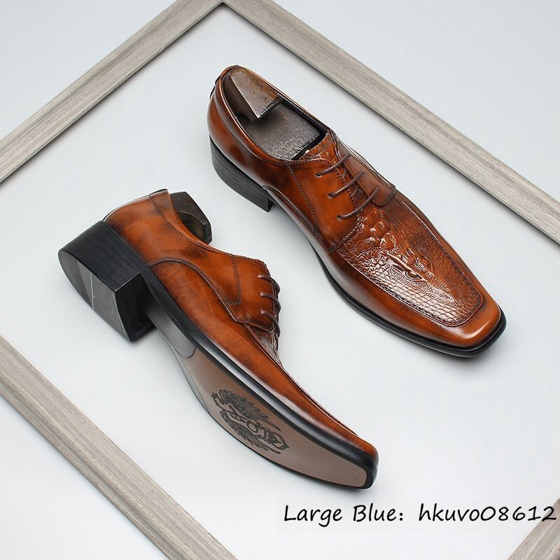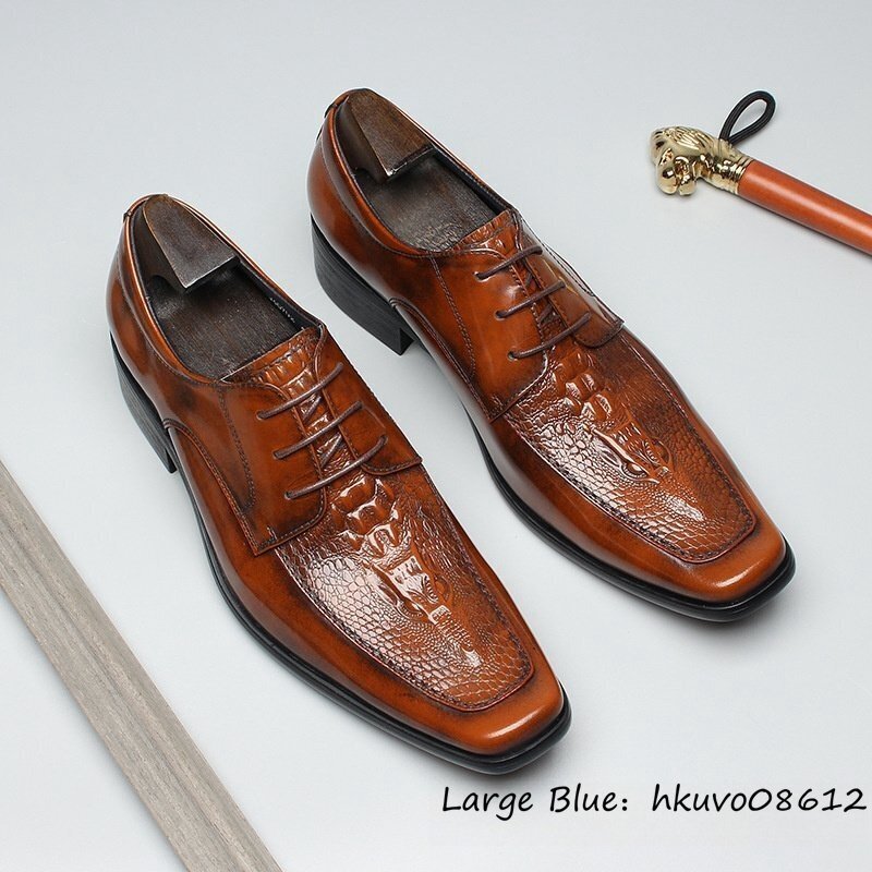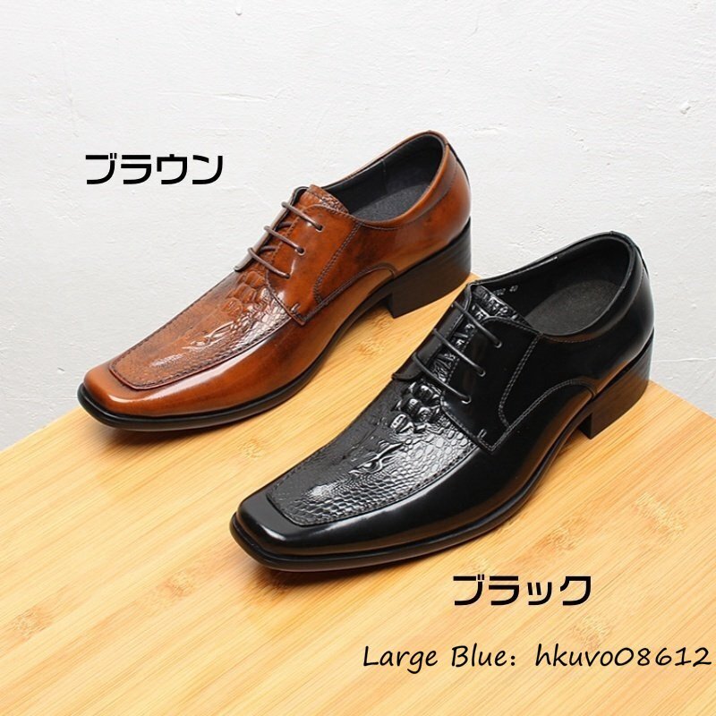 定価9万超◆最高級 本革 ビジネスシューズ メンズ 鰐柄 職人手作り レザーシューズ 牛革 紳士靴 革靴 超希少 フォーマル ブラウン 24.5cm