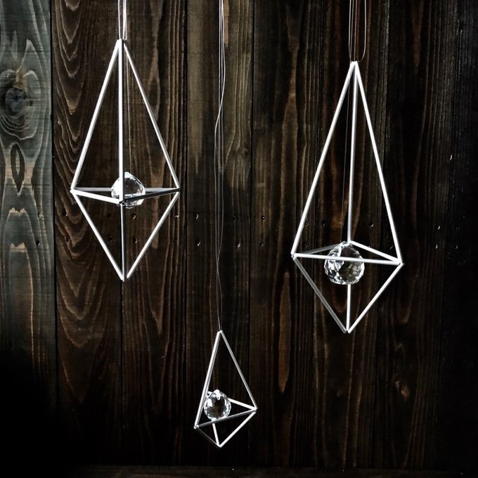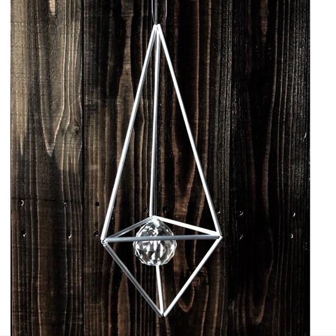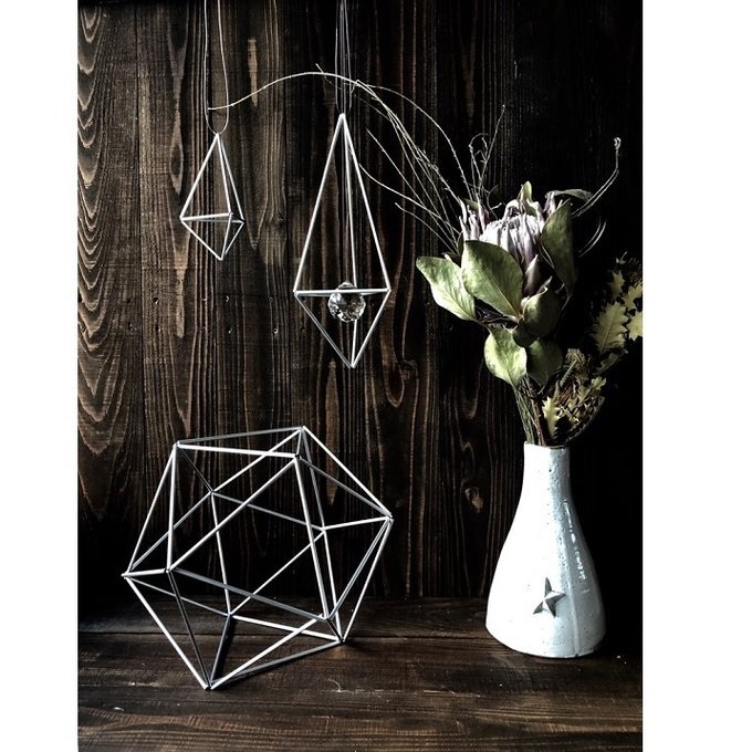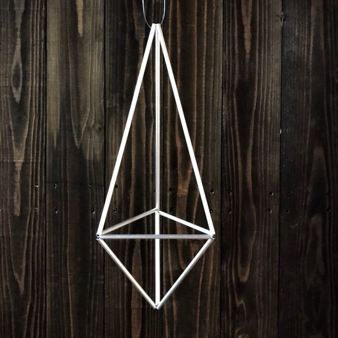 こちらは「ダブルポイント ショート」大サイズの販売ページです。 大中小の3サイズ展開です オプションでサンキャッチャーを付ける事ができます。 デザインとしてはつける事を設定して考えたものです 真ん中に核のように光るサンキャッチャー 太陽光にあたると虹色の光が踊り ファンタジーで非日常感を楽しめますのでお勧めです ------------------------- ベランダや木に飾って楽しみたいという思いからできたオブジェです。 錆びにくい素材のアルミを使用しています たくさんつるして幻想的な空間にするのもおすすめです^^ <サイズ展開> 大 縦28㎝ 横11㎝ 中 縦22.5㎝ 横11㎝ 小 縦14㎝ 横7.5㎝ オプションのサンキャッチャーは2サイズあります 大サイズは4㎝がオススメです。 中サイズは3㎝でも4㎝でもどちらでも可愛いです。 小サイズは3㎝がオススメです