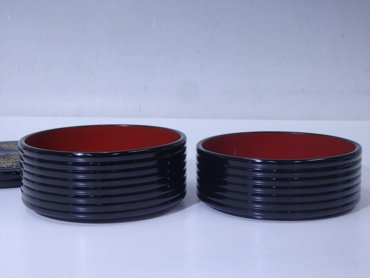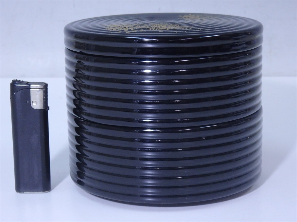 ★状態良好!平安 象彦【二段丸重(木製) 内朱】直径14.5cm 高さ12cm 茶道具 若松重 菓子器 重箱 漆器 茶器 弁当箱