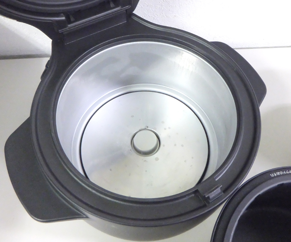 釜を二重にして蒸気の力だけで炊き上げる炊飯器です。