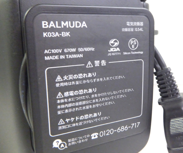 BALMUDA The Gohan 3合炊き 電気炊飯器 K03A-BK ブラック 炊飯ジャー 蒸気炊飯 マイコン炊飯器 バルミューダ 札幌市 屯田店