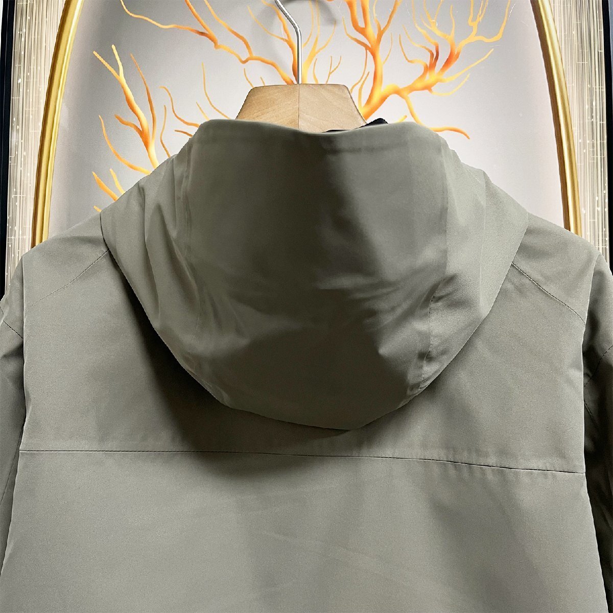 フードつば&ドローコードが付いており急な雨などの場合、顔をすっぽり覆い隠せます。両サイドにはストッパー付きのドローコードを備え、裾を絞ることで風の侵入を防ぎつつ、シルエットの変化も楽しめる実用的なディテールです。フロントはマジックテープとジッパーの二重構造で防風性を高め、外気の侵入を防ぎます。サイドポケットと胸ポケットには止水ファスナーを採用し、雨の日でも中の荷物を濡れずに保てます。