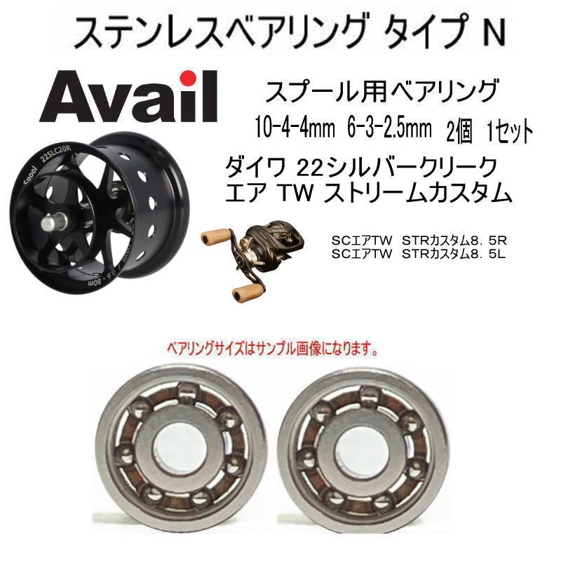 アベイル 22シルバークリーク エア TW ストリームカスタム ステンレスベアリング タイプ N 10-4-4mm 6-3-2.5mm 2個 1セット