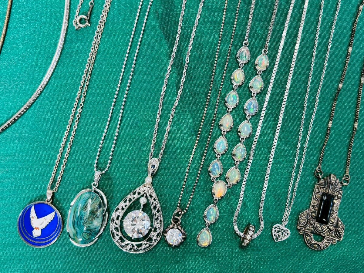 kme04▼アクセサリー 10点おまとめ/ネックレス SILVER カラーストーン ラインストーン▼