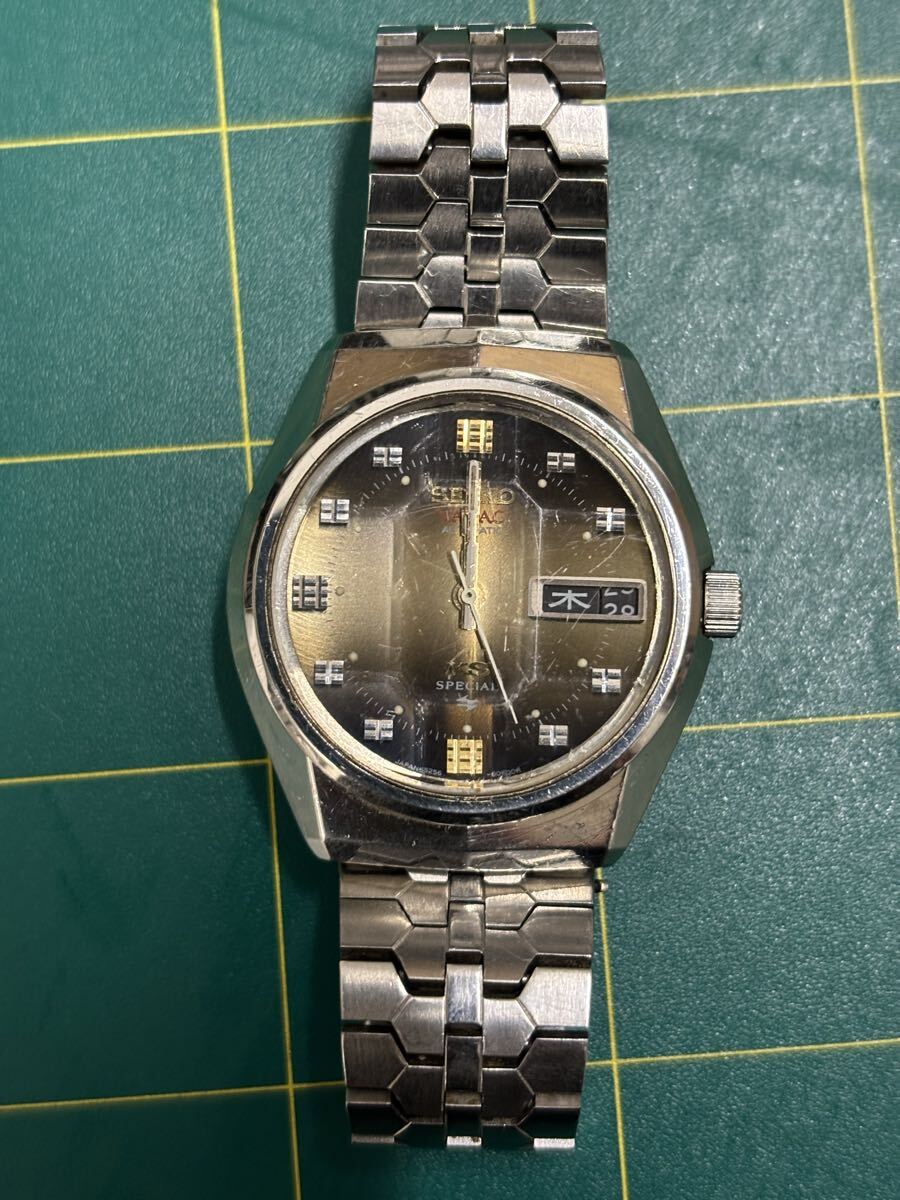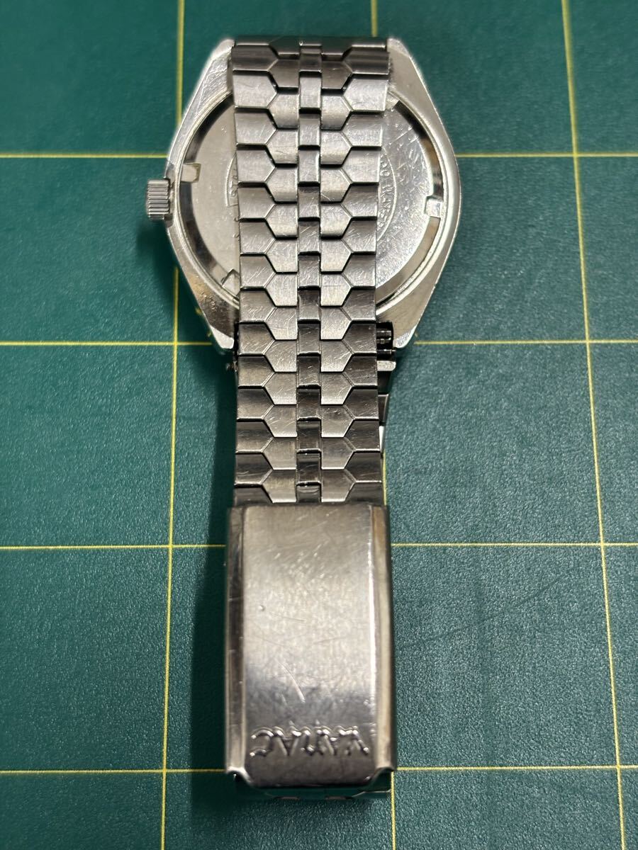 長期保管品になります。秒針が動くことは確認しています。竜頭で日にち、曜日は変えられますが引っかかる感じはあります。