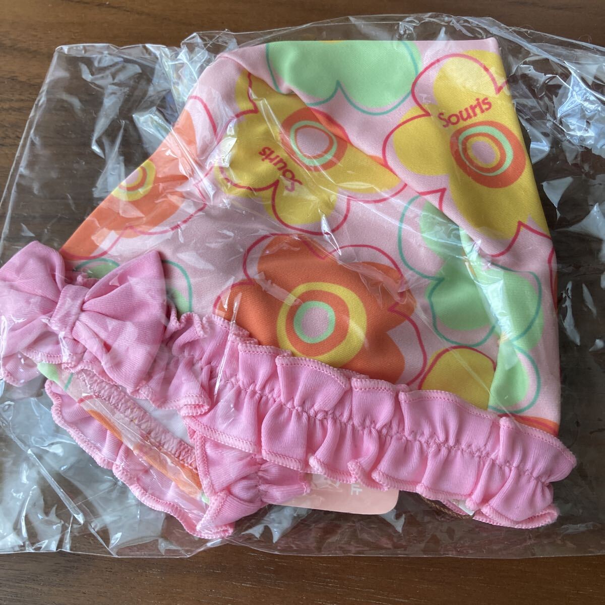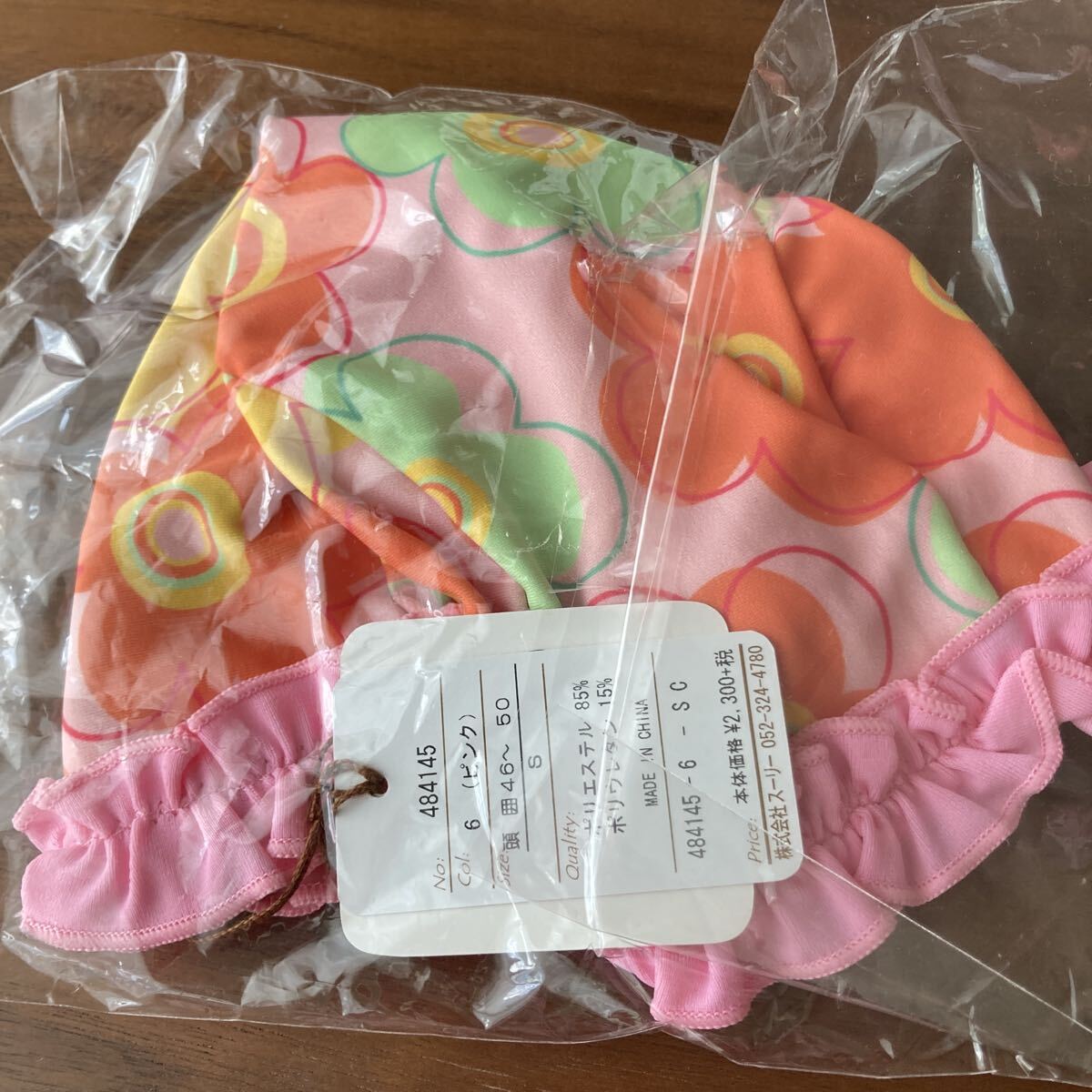 スーリーのスイムキャップ、新品タグ付きです。可愛いお花柄のデザインです。サイズはS(46cm-50cm)です。